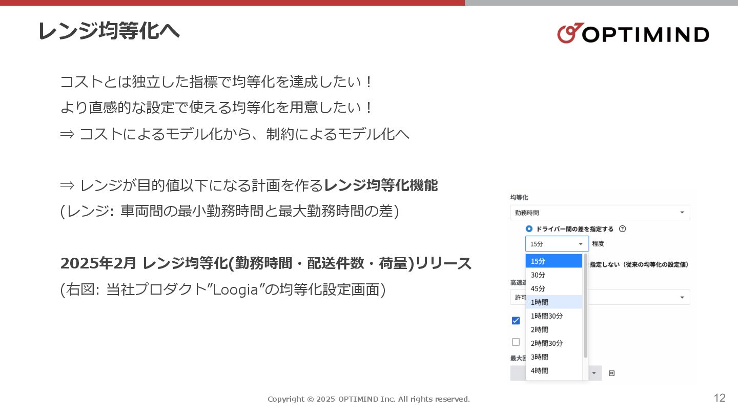 Copyright © 2025 OPTIMIND Inc. All rights reserved. 12 レンジ均等化へ