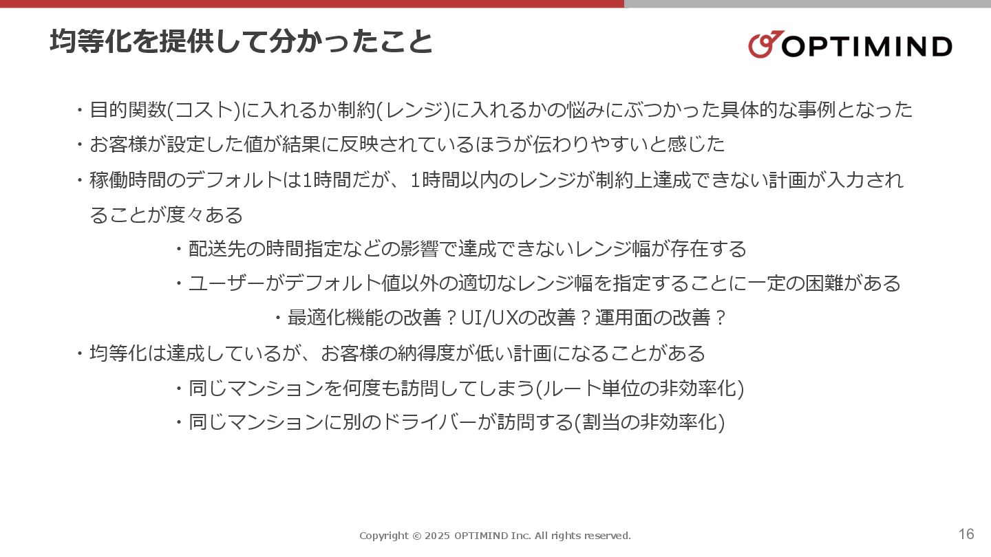 Copyright © 2025 OPTIMIND Inc. All rights reserved. 16 均等化を提供して分かったこと