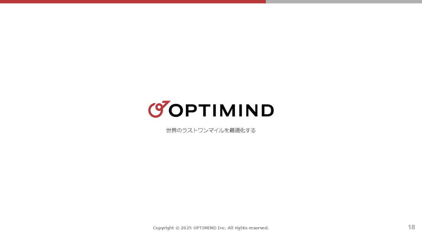 Copyright © 2025 OPTIMIND Inc. All rights reserved. 18 世界のラストワンマイルを最適化する