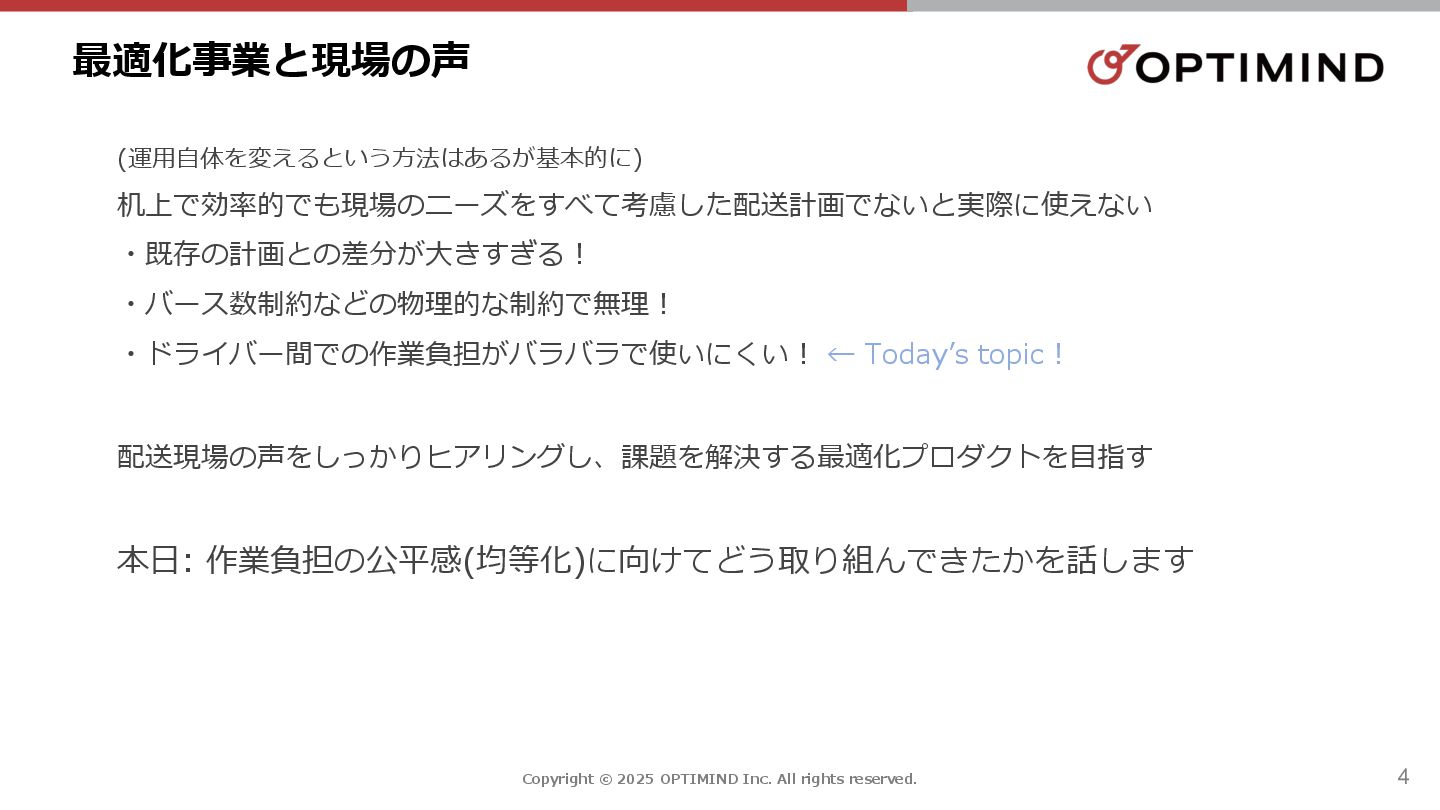 Copyright © 2025 OPTIMIND Inc. All rights reserved. 4 最適化事業と現場の声