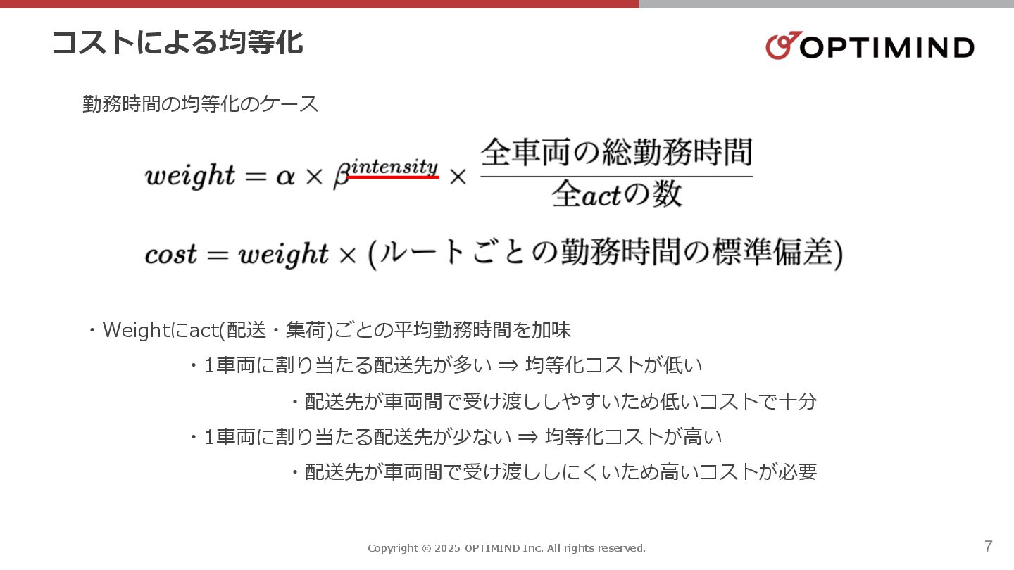Copyright © 2025 OPTIMIND Inc. All rights reserved. 6 コストに基づいた均等化機能