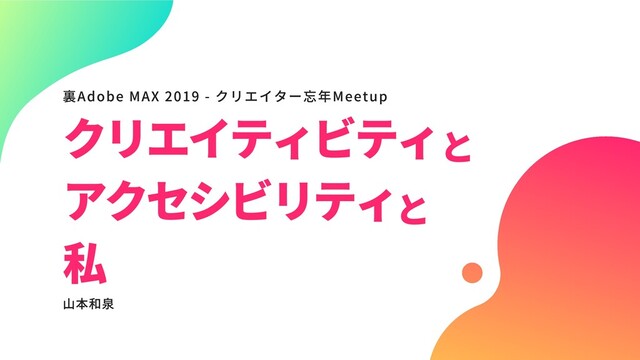 クリエイティビティ アクセシビリティ 私 ⼭本和泉 裏AdobeMAX2019-クリエイター忘年Meetup と と