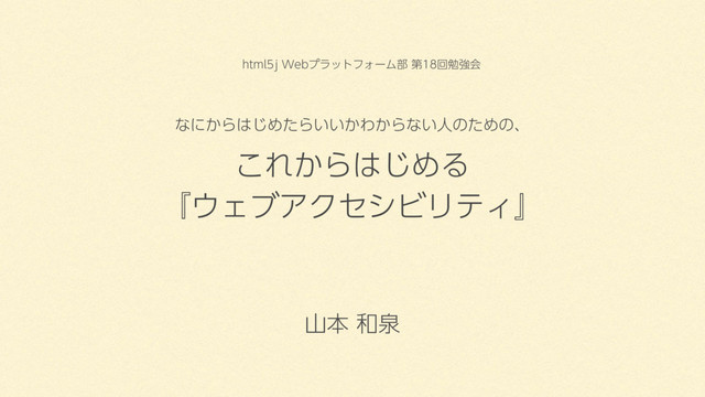 2017年11月22日(水) html5j Webプラットフォーム部 第18回勉強会 今回のテーマは「アクセシビリティ/インクルーシブデザイン」 https://html5j-webplat.connpass.com/event/71784/
