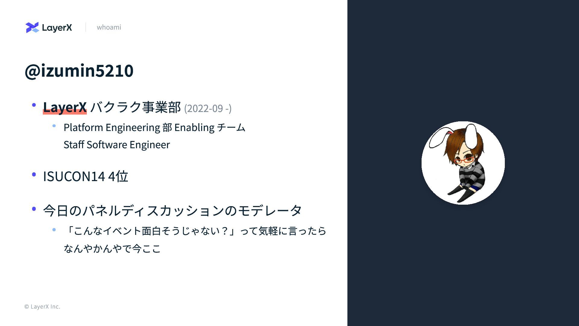 @izumin5210 © LayerX Inc. whoami LayerX バクラク事業部 (2022-09 -) Platform