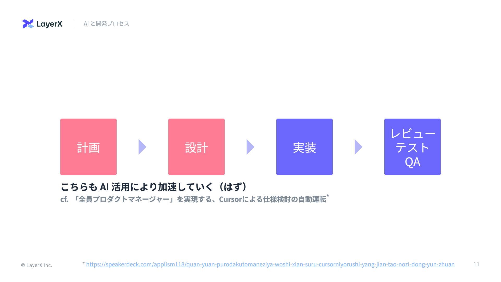 © LayerX Inc. AI と開発プロセス 計画 こちらも AI 活用により加速していく(はず) cf.
