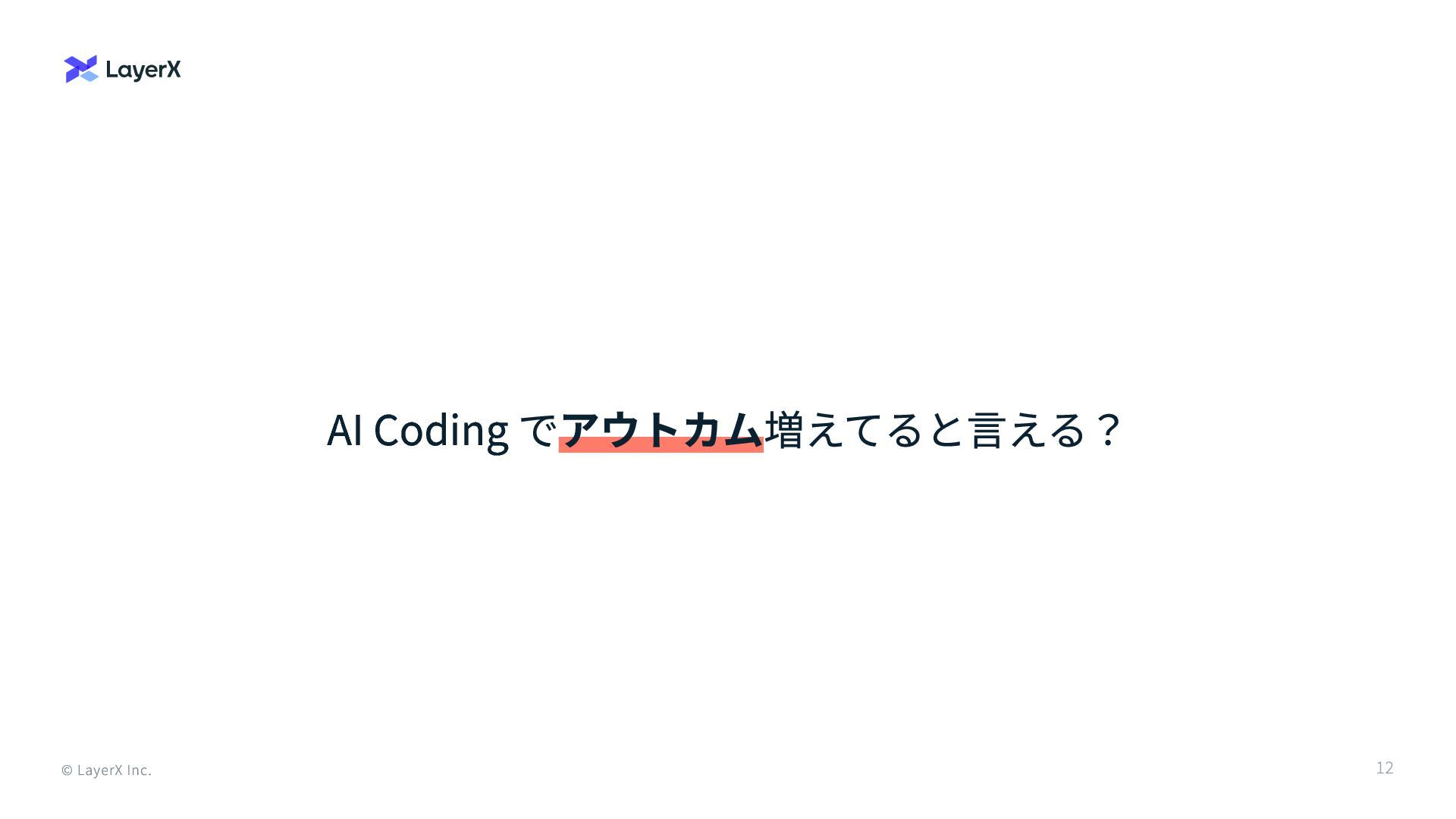 AI Coding でアウトカム増えてると言える? © LayerX Inc. 12