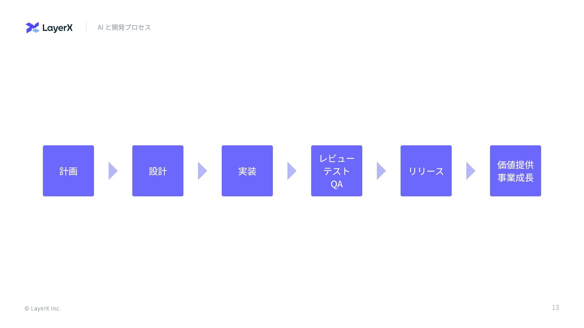 計画 設計 実装 レビュー テスト QA © LayerX Inc. AI