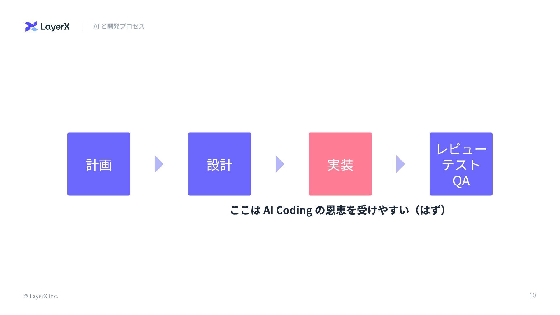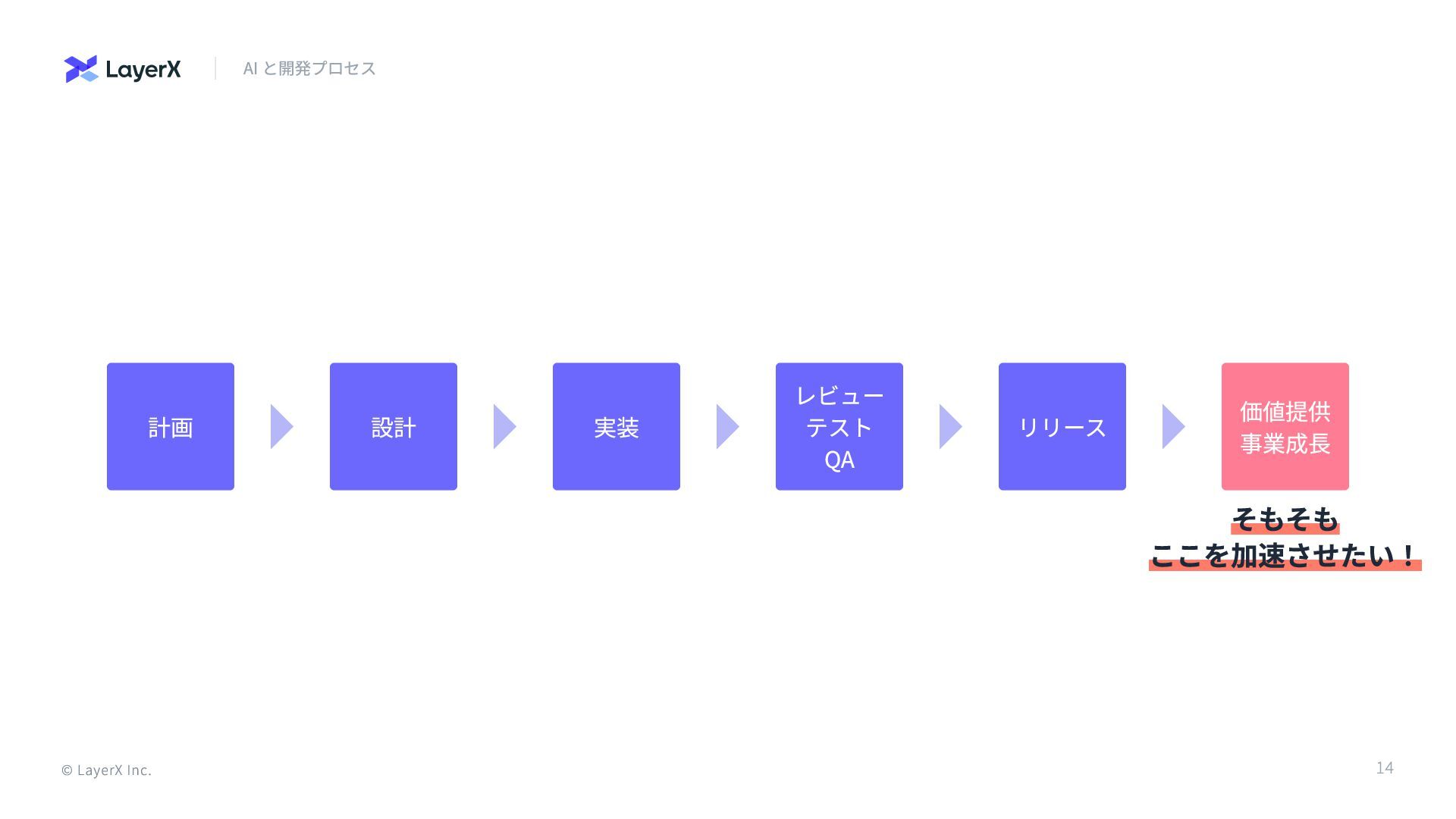 © LayerX Inc. AI と開発プロセス 計画 設計 実装 ここは AI