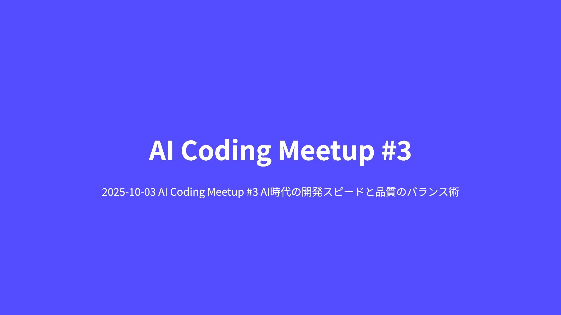 AI Coding Meetup #3 2025-10-03 AI Coding Meetup #3 AI時代の開発スピードと品質のバランス術