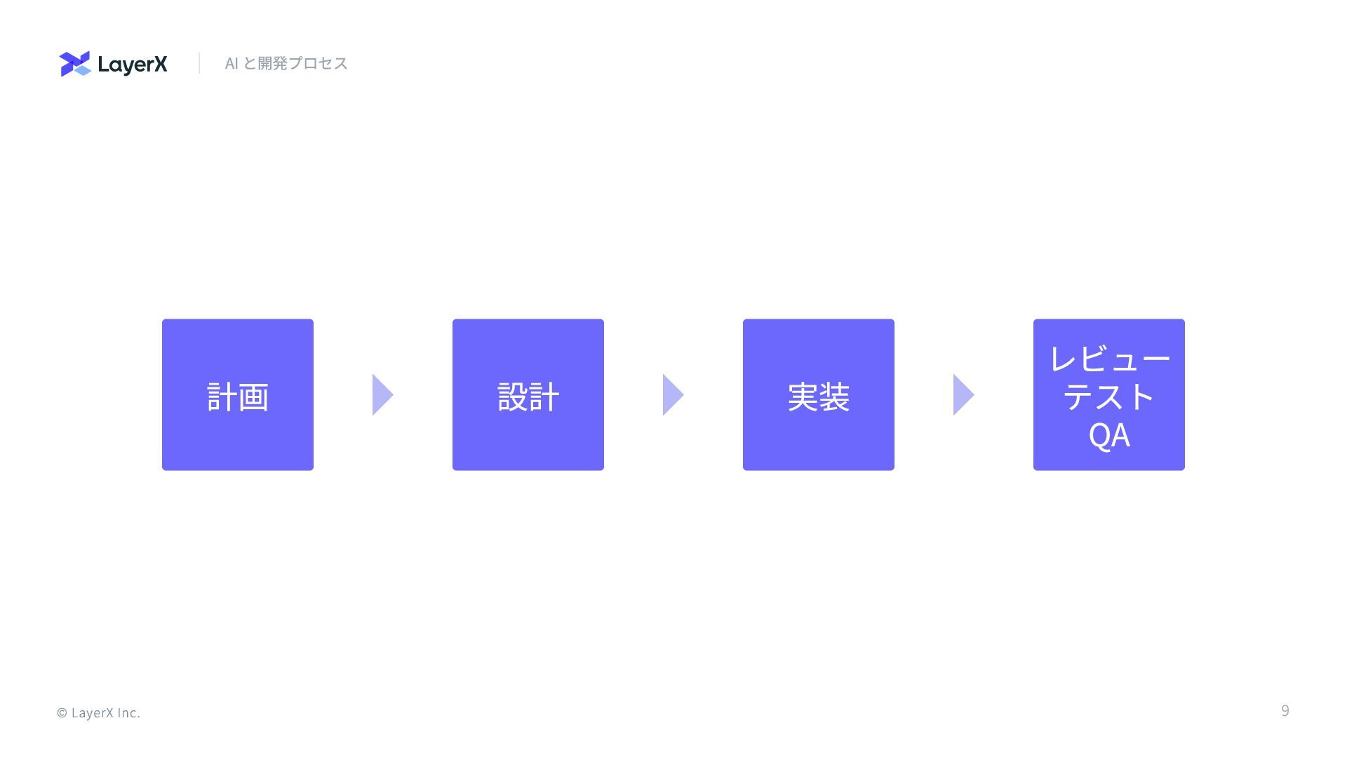 © LayerX Inc. AI と開発プロセス 計画 設計 実装 レビュー テスト