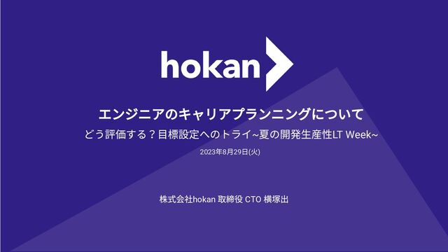 エンジニアのキャリアプランニングについて どう評価する?目標設定へのトライ~ 夏の開発生産性LT Week~ 2023 年8 月29 日( 火) 株式会社hokan