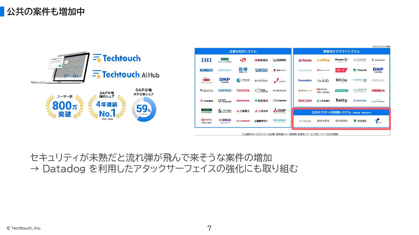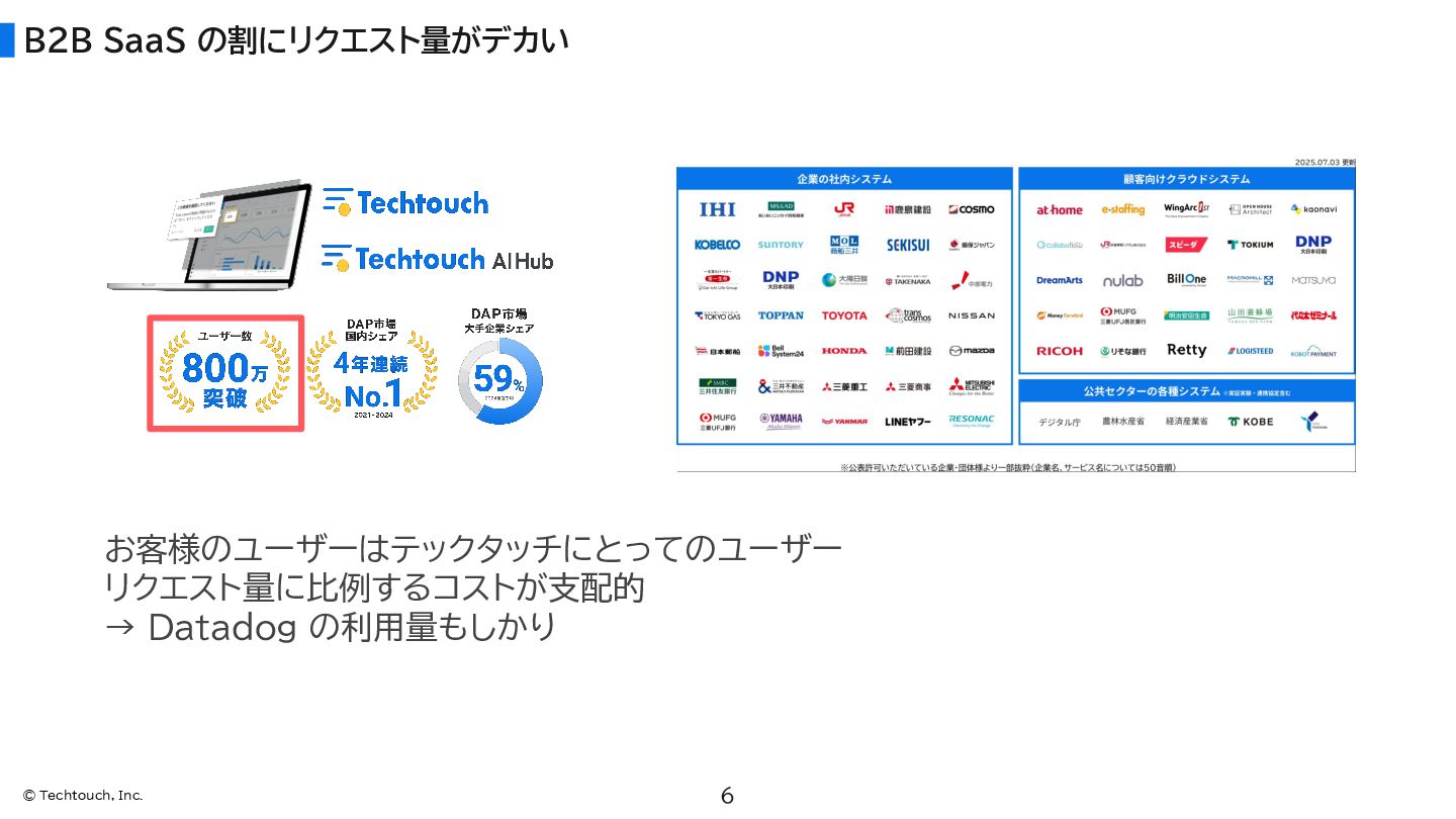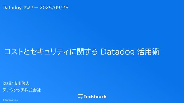 Datadog セミナー:Infra・APM・Logs をどう使う? Datadog ユーザー活用事例セッション https://www.datadoghq.com/ja/event/casestudies-seminar202509/ におけるテックタッチ株式会社所属の市川/izziiの登壇資料