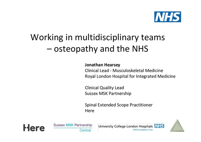 Hearsey Clinical Lead - Musculoskeletal Medicine Royal London Hospital for Integrated Medicine Clinical Quality Lead Sussex MSK Partnership Spinal Extended Scope Practitioner Here