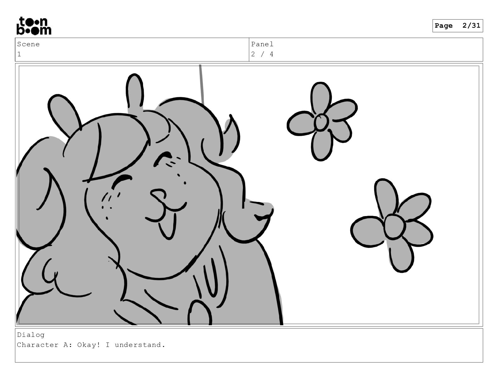 Scene 1 Panel 2 / 4 Dialog Character A: Okay!
