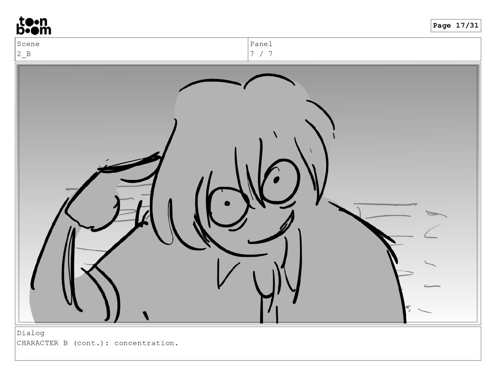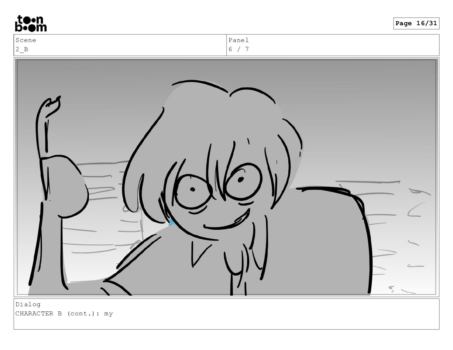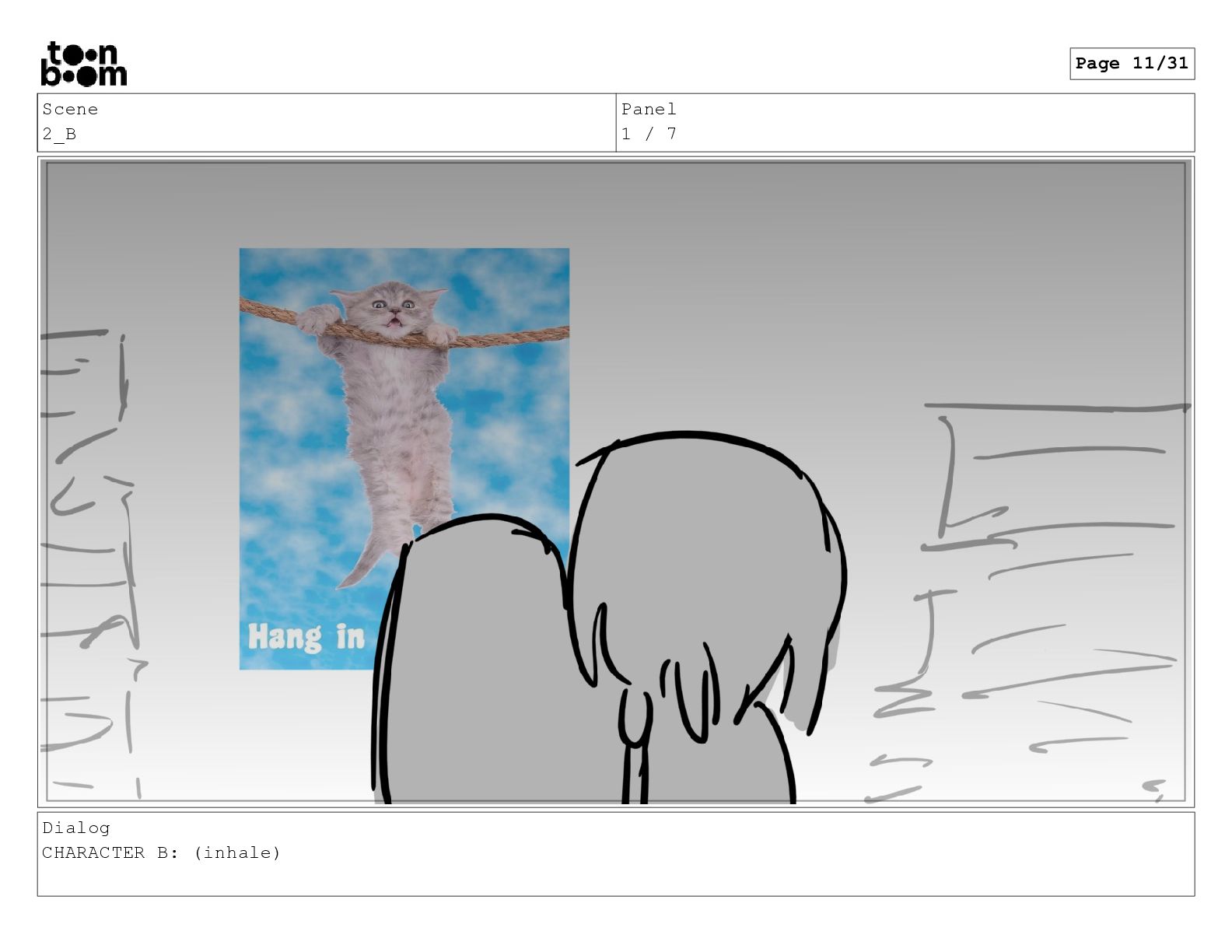 Scene 2_B Panel 1 / 7 Dialog CHARACTER B: (inhale)