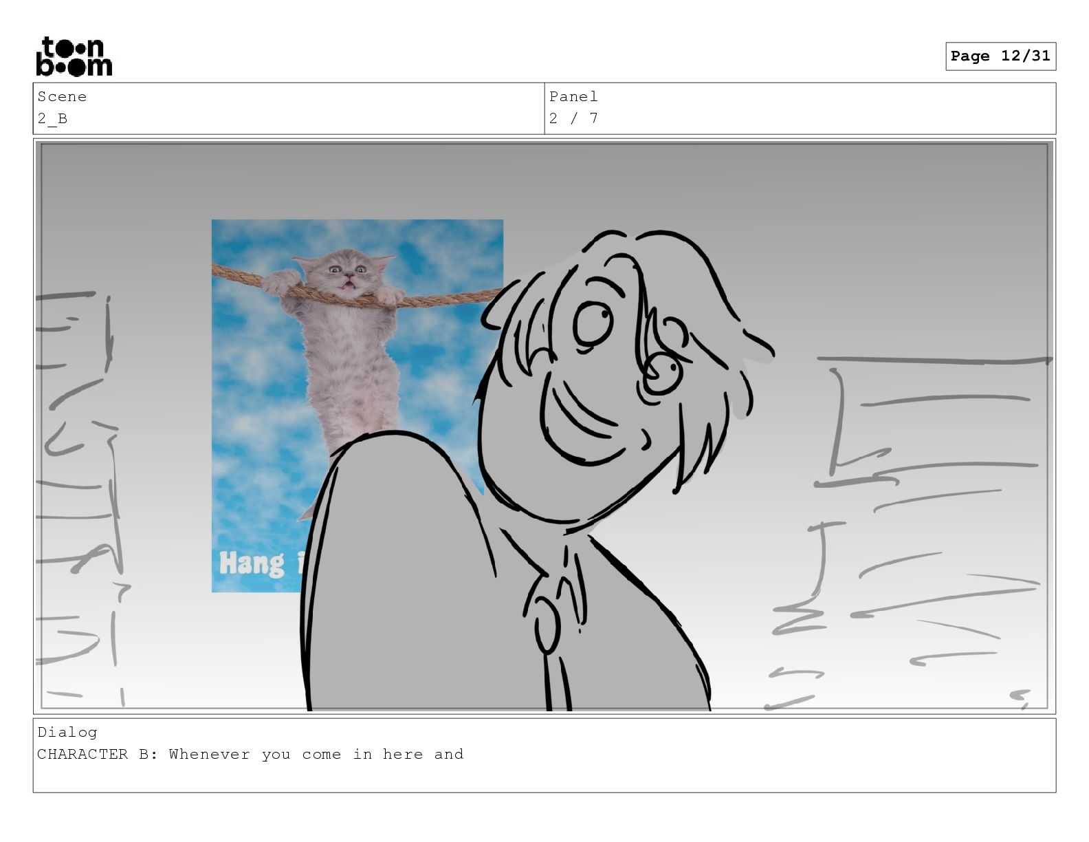 Scene 2_B Panel 2 / 7 Dialog CHARACTER B: Whenever