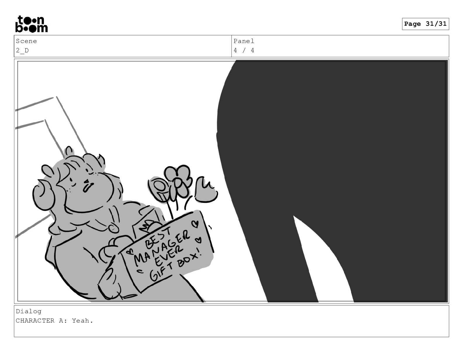 Scene 2_D Panel 4 / 4 Dialog CHARACTER A: Yeah.