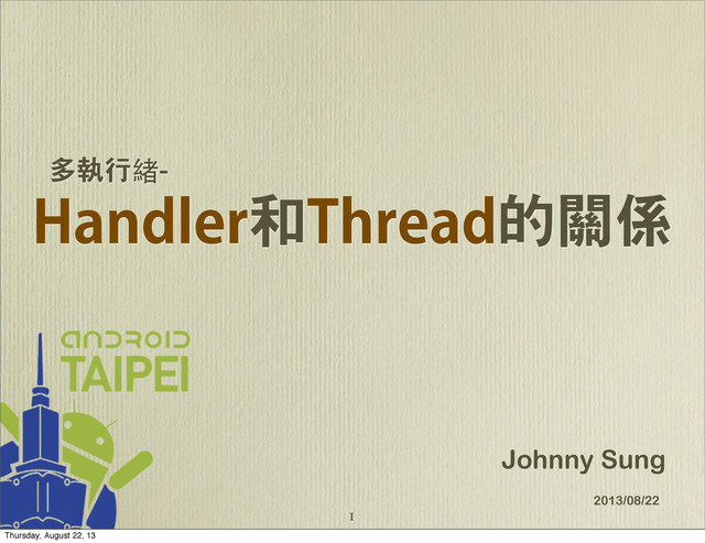 action on the UI thread. If the current thread is the * UI thread, then the action is executed immediately. If the current thread * is not the UI thread, the action is posted to the event queue of the UI * thread. * * @param action * the action to run on the UI thread */ public final void runOnUiThread(Runnable action) { if (Thread.currentThread() != mUiThread) { mHandler.post(action); } else { action.run(); } } 40 Thursday, August 22, 13