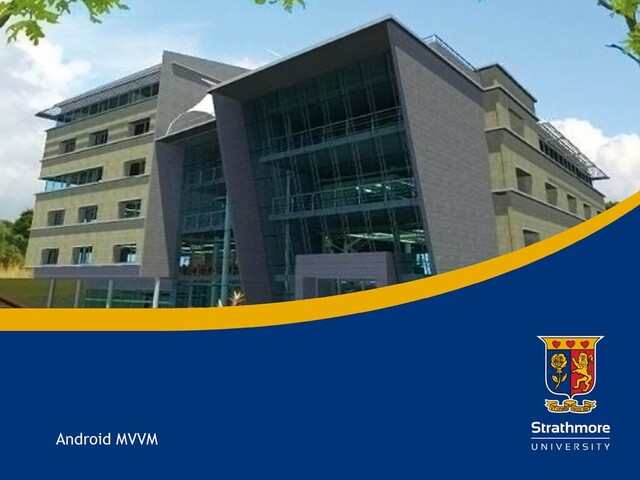 of this lecture, each student should: • Understand the meaning of Architecture of an app and its advantages. • Understand what are Google’s Architecture Components. • Understand the MVVM Android Architecture. • Understand using ROOM, Retrofit and Repositories in the Model layer of the MVVM Architecture. • Understand using ViewModels, Lifecycles, LiveData in the ViewModel layer of the MVVM Architecture. • Understand using DataBinding and ViewBinding in the View layer of the MVVM Architecture. • Understand how to connect the different layers using Dagger2