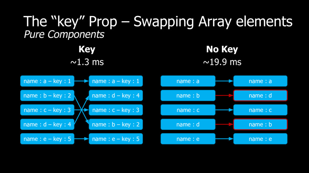 ~1.3 ms No Key ~19.9 ms name : a – key : 1 name : b – key : 2 name : c – key : 3 name : d – key : 4 name : e – key : 5 name : a name : b name : c name : d name : e name : a – key : 1 name : d – key : 4 name : c – key : 3 name : b – key : 2 name : e – key : 5 name : a name : d name : c name : b name : e
