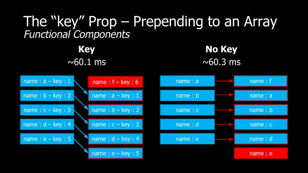 Key ~60.1 ms No Key ~60.3 ms name : a – key : 1 name : b – key : 2 name : c – key : 3 name : d – key : 4 name : e – key : 5 name : a name : b name : c name : d name : e name : a – key : 1 name : b – key : 2 name : c – key : 3 name : d – key : 4 name : e – key : 5 name : f – key : 6 name : a name : b name : c name : d name : e name : f