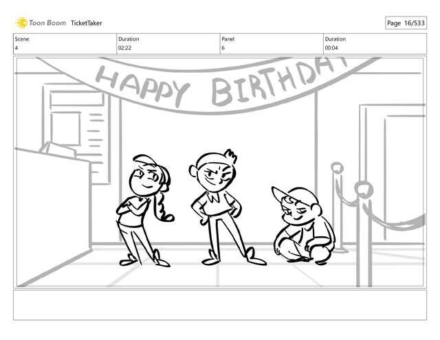 Scene 65 Duration 02:03 Panel 1 Duration 00:16 TicketTaker Page