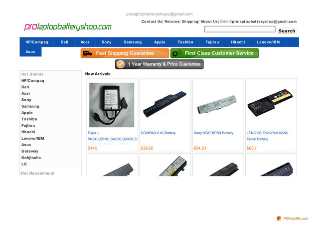 [email protected] Search HP/Compaq Dell Acer Sony Samsung Apple Toshiba Fujitsu Hitachi Lenovo/IBM Asus Hot Brands HP/Compaq Dell Acer Sony Samsung Apple Toshiba Fujitsu Hitachi Lenovo/IBM Asus Gateway Kohjinsha LG Hot Recommend Fujitsu S6240,S2110,S6230,S2020,S 6130,S6120 Battery Charger $145 COMPAQ 610 Battery $39.56 Sony VGP-BPS9 Battery $54.21 LENOVO ThinkPad X220i Tablet Battery $65.7 New Arrivals
