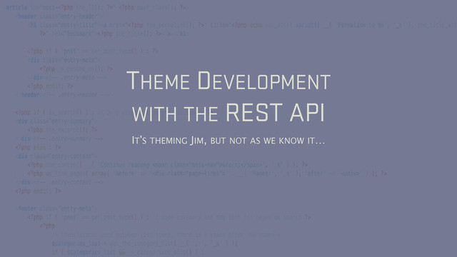 in WordPress core in 4.1/4.2 (probably Spring 2015) • Available now as a plugin: wp-api.org • There is also a public WordPress.com REST API that you can use with any self-hosted site via Jetpack…