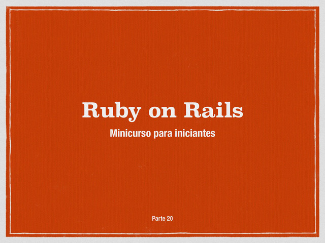 Ruby on Rails Minicurso para iniciantes ! ! Parte 20