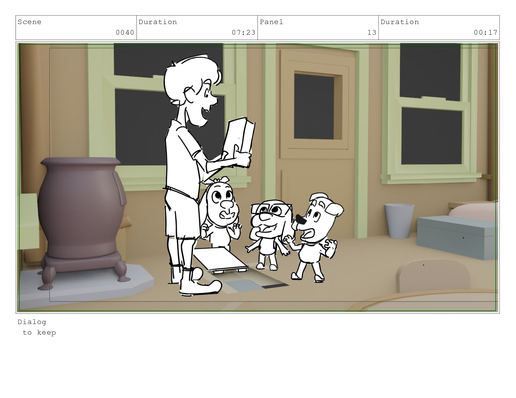 Scene 0040 Duration 07:23 Panel 13 Duration 00:17 Dialog to