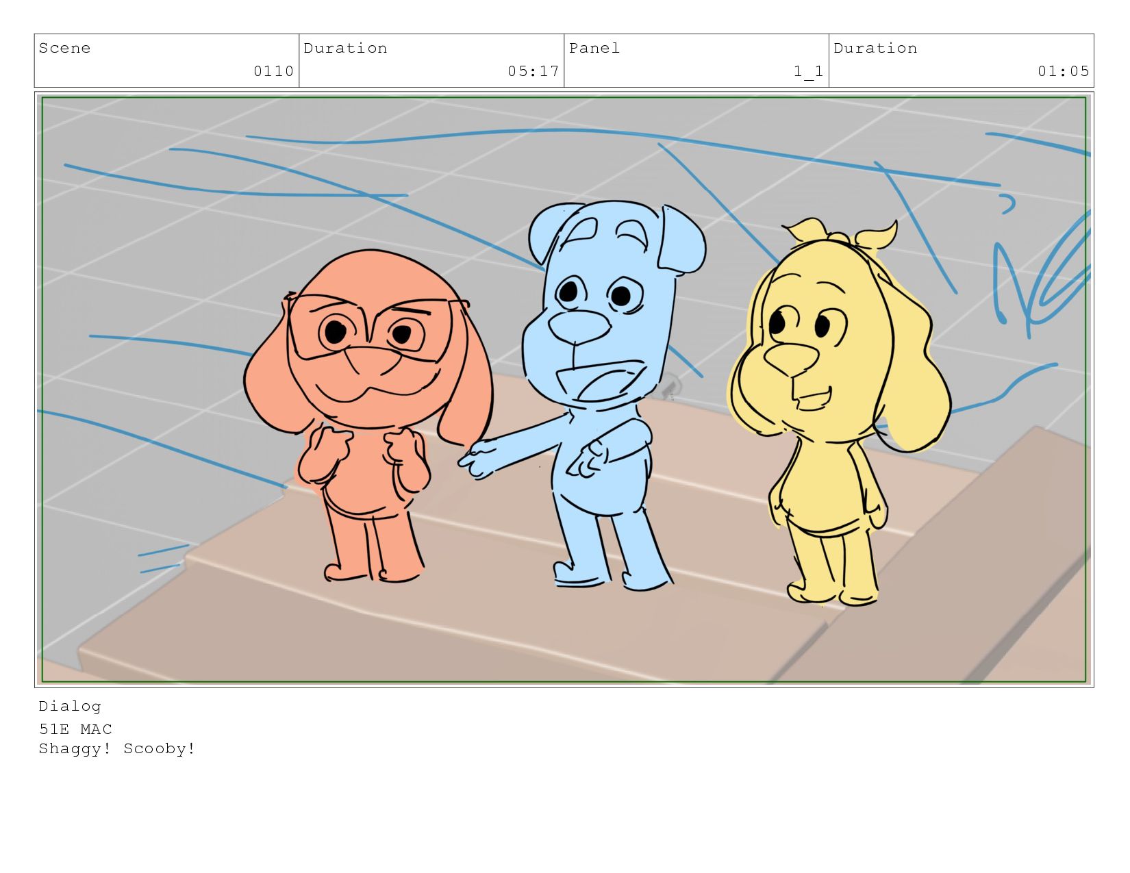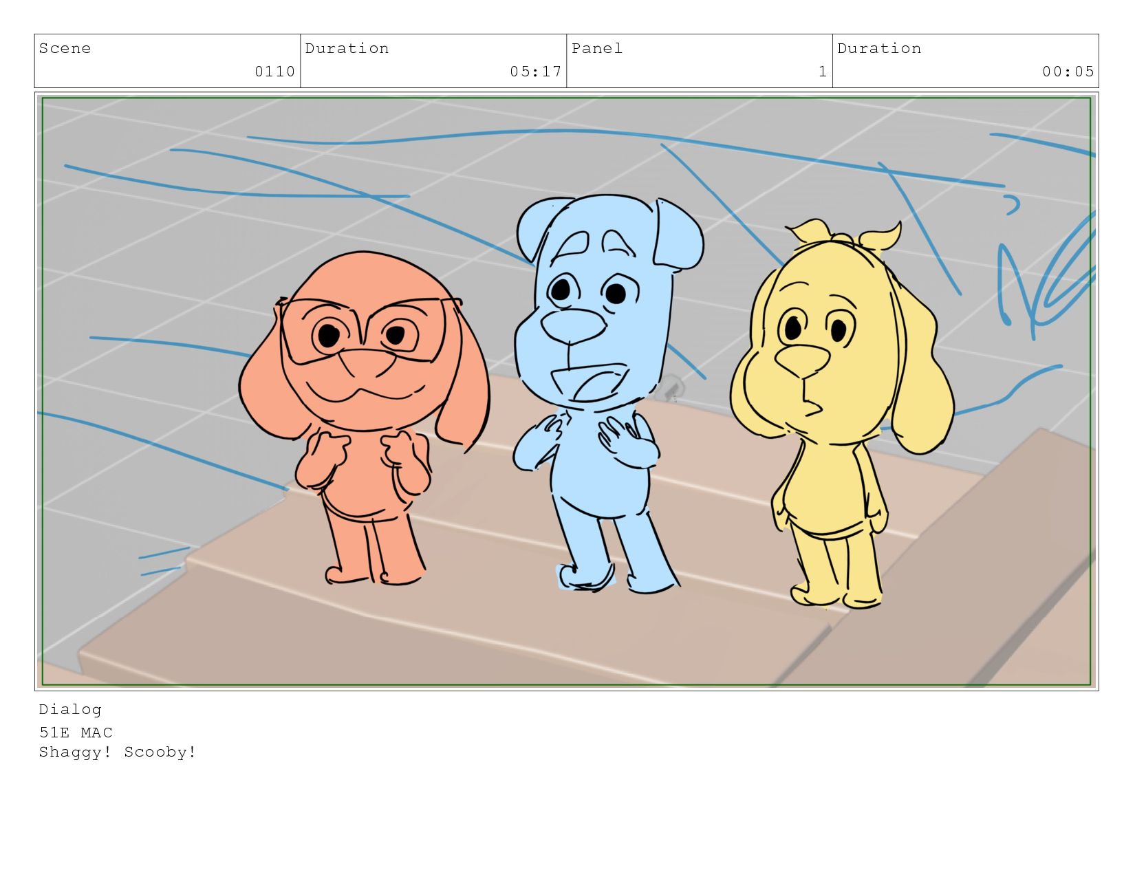 Scene 0110 Duration 05:17 Panel 1 Duration 00:05 Dialog 51E