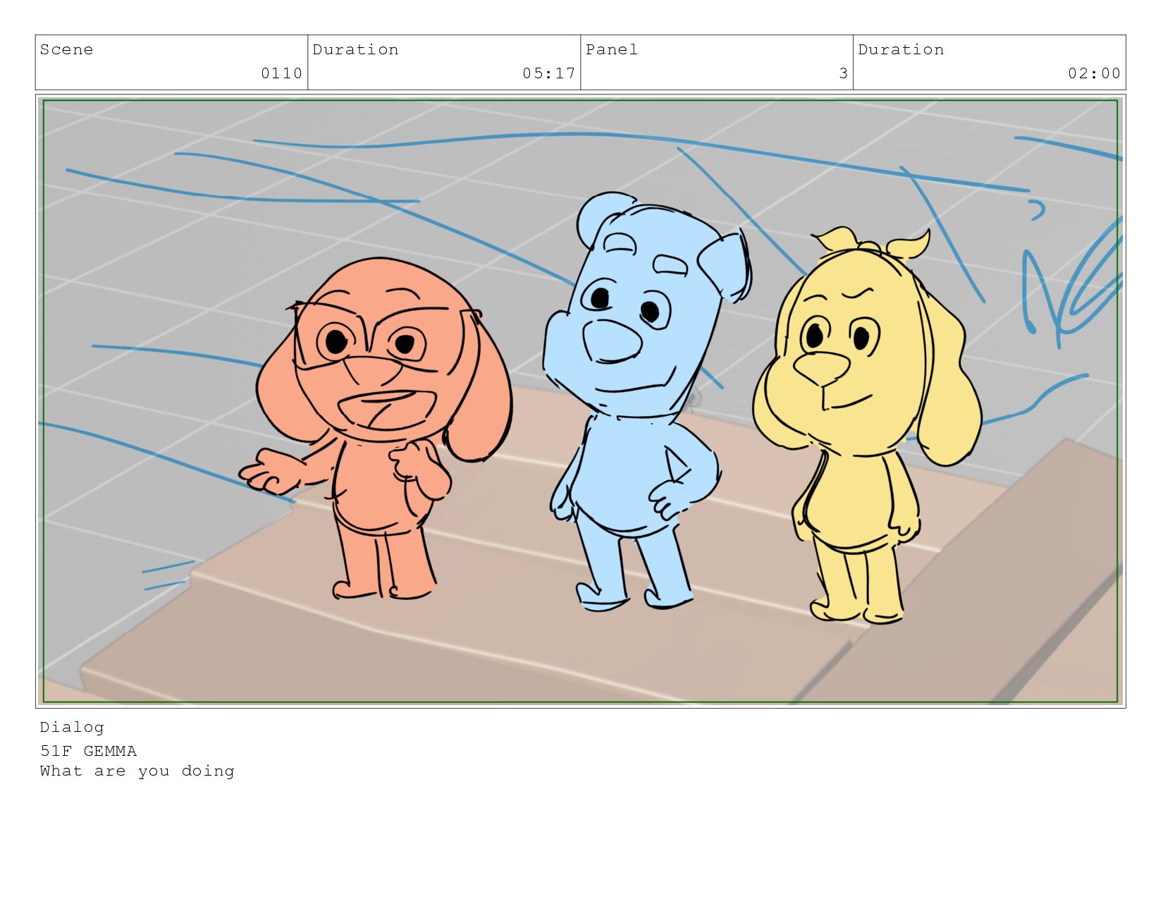 Scene 0110 Duration 05:17 Panel 3 Duration 02:00 Dialog 51F