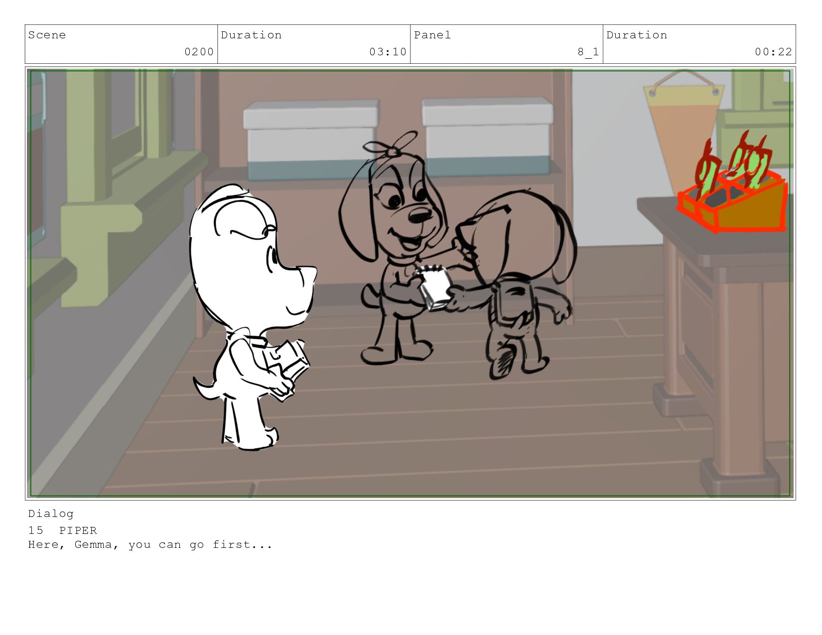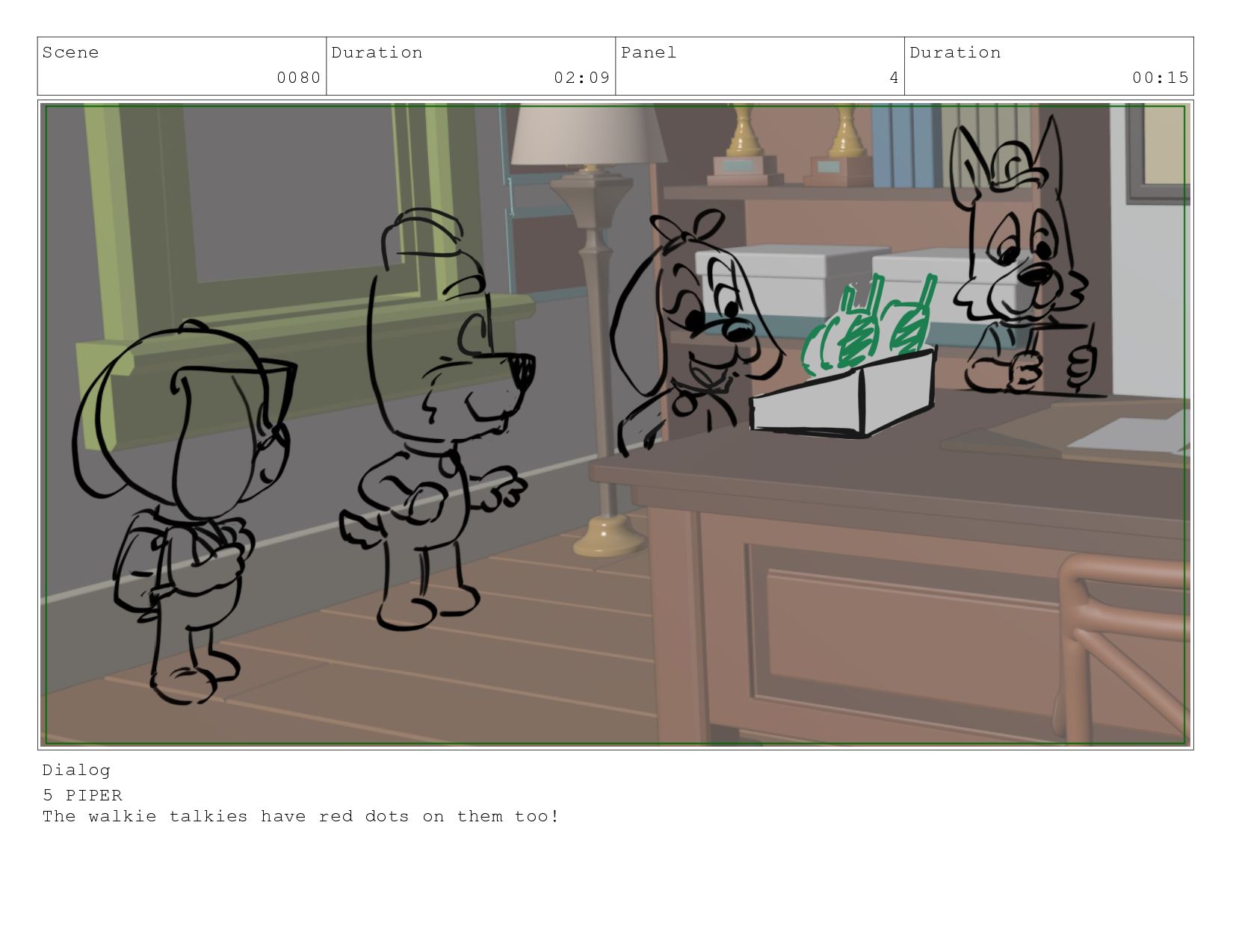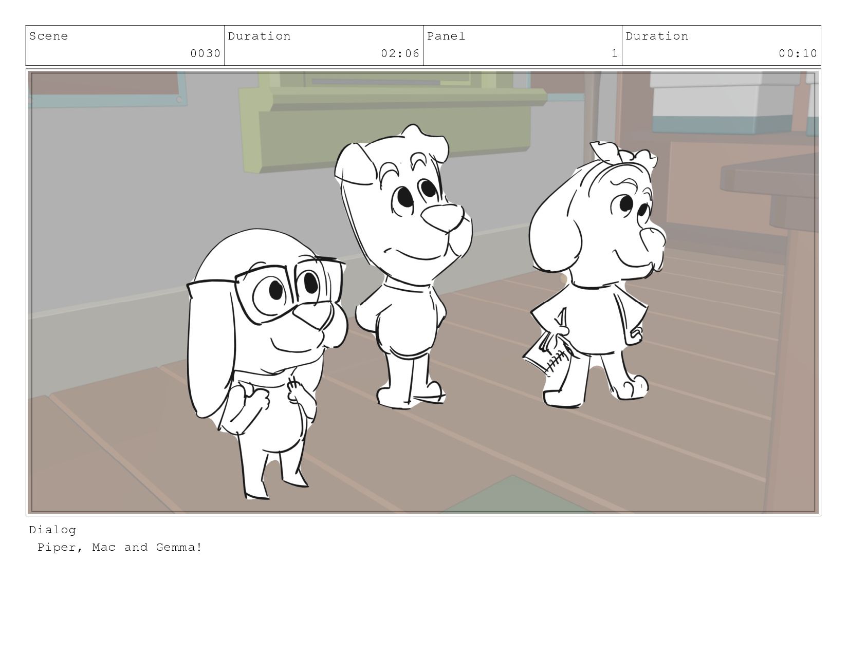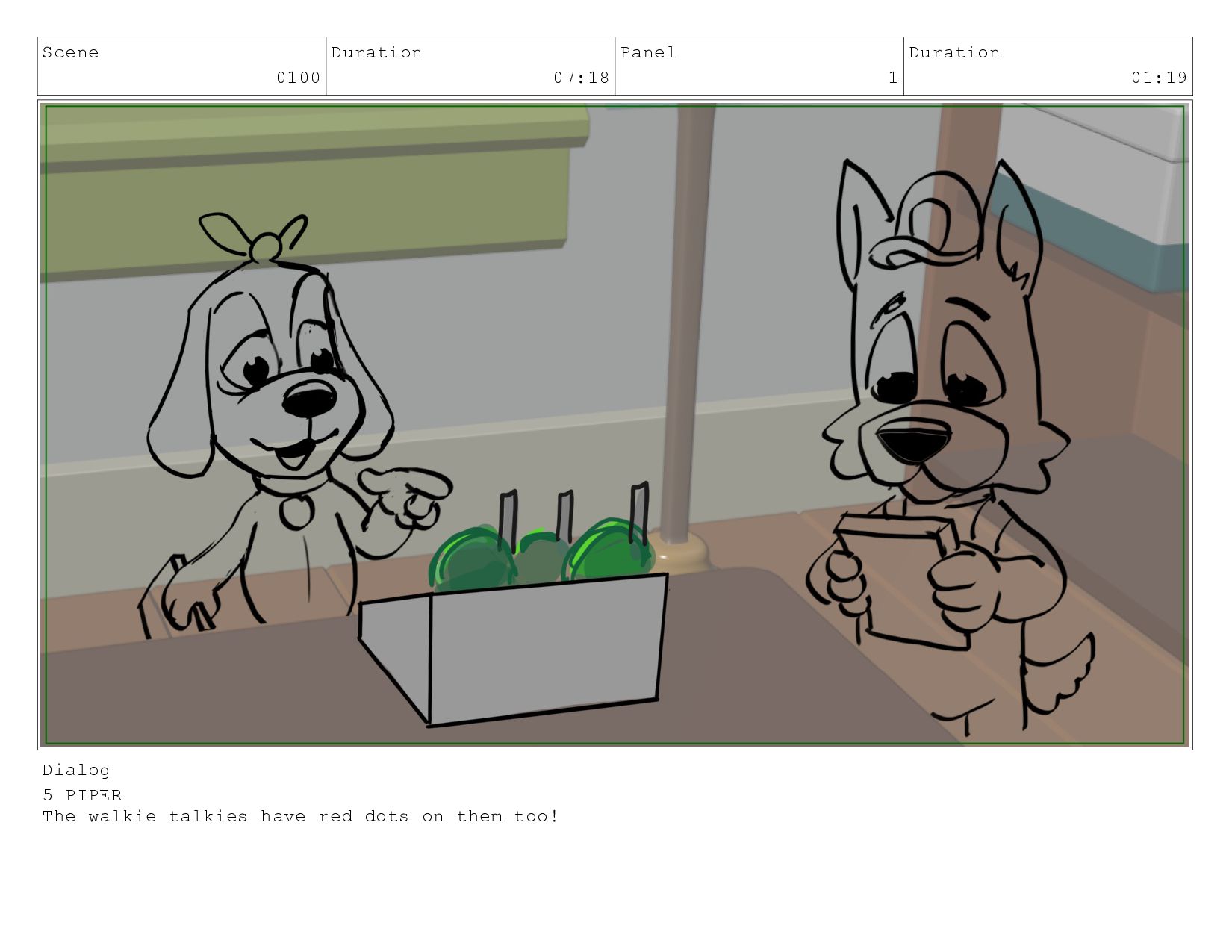 Scene 0030 Duration 02:06 Panel 1 Duration 00:10 Dialog Piper,