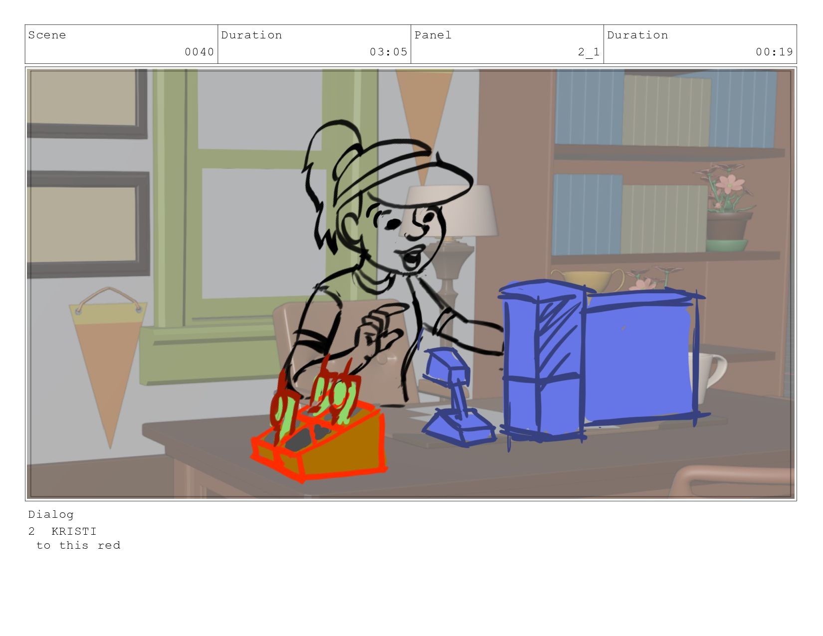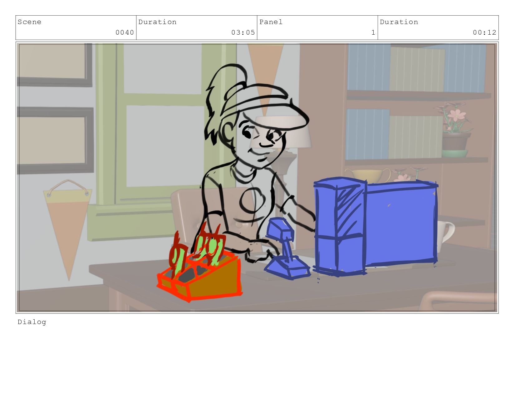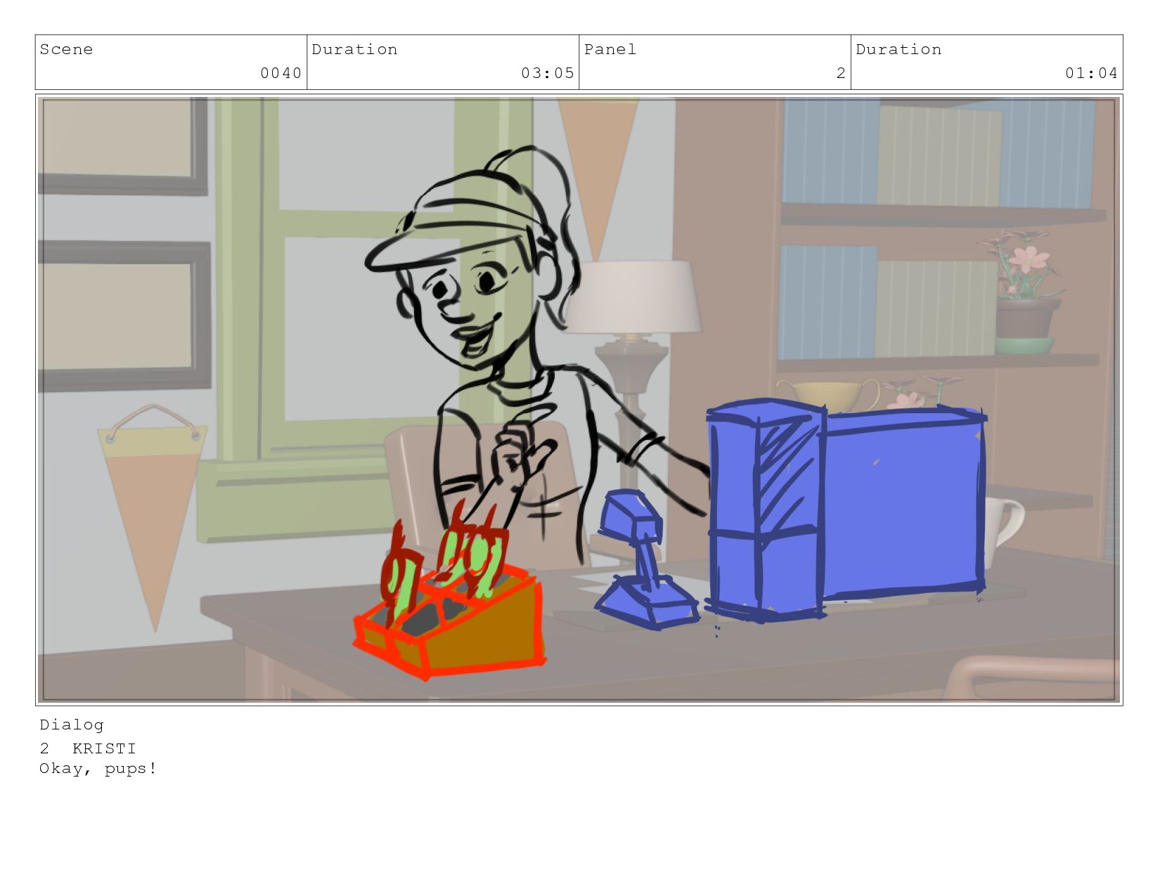 Scene 0040 Duration 03:05 Panel 2 Duration 01:04 Dialog 2