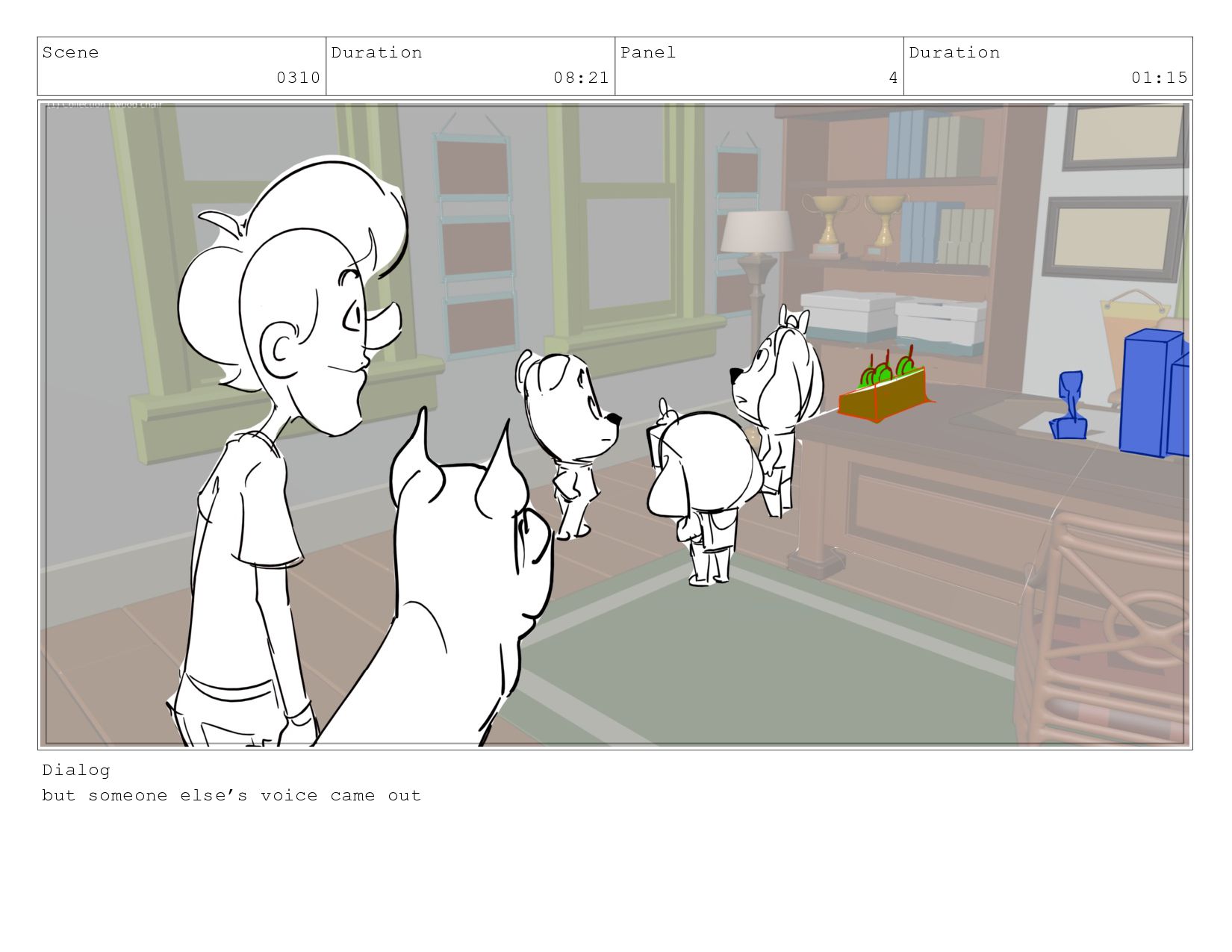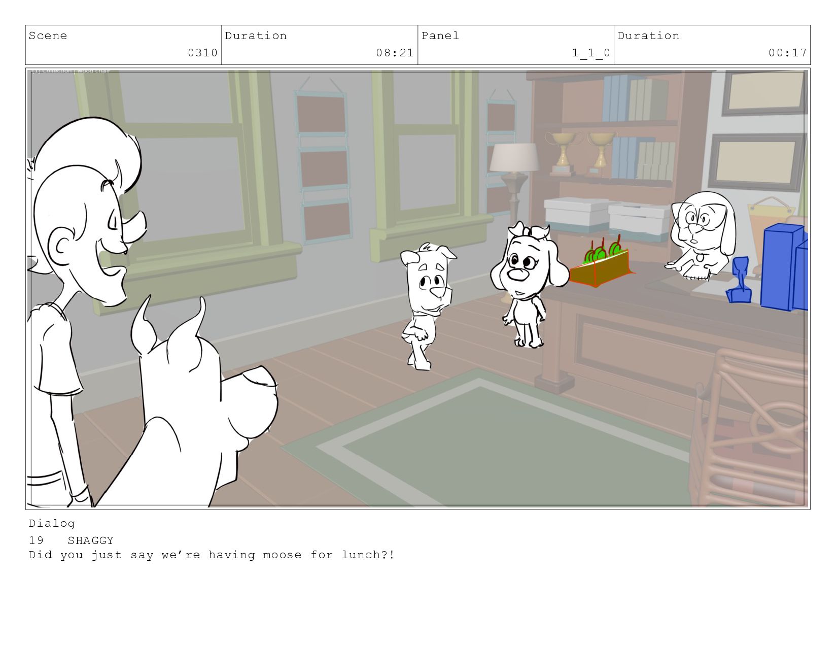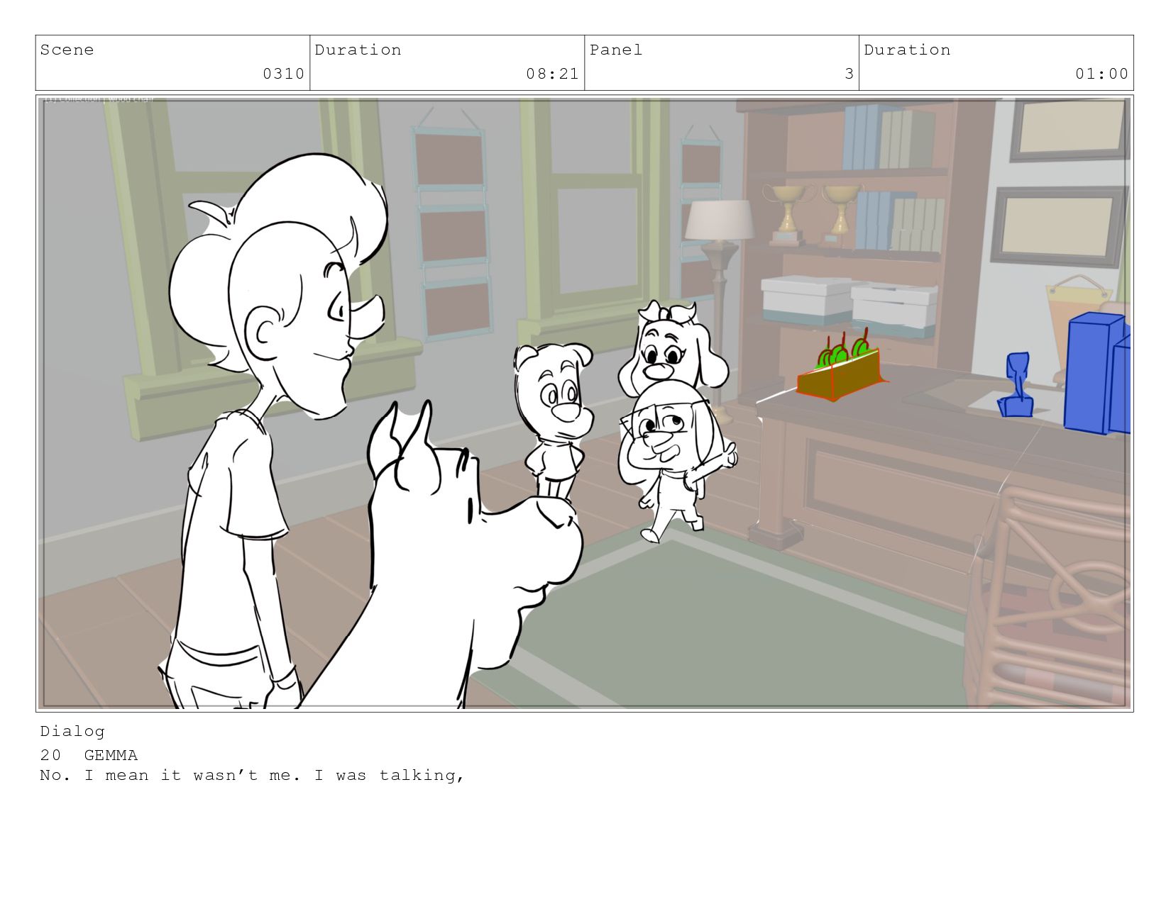 Scene 0310 Duration 08:21 Panel 3 Duration 01:00 Dialog 20