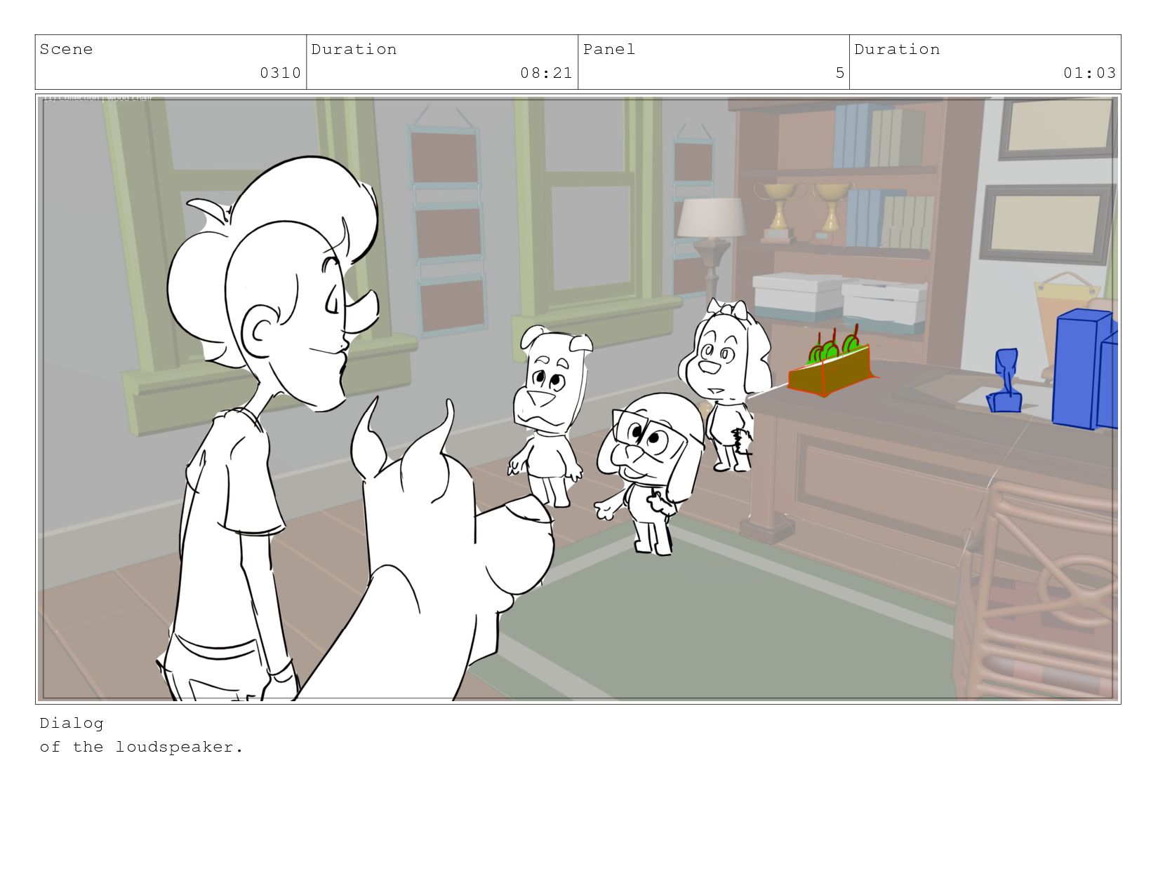 Scene 0310 Duration 08:21 Panel 5 Duration 01:03 Dialog of