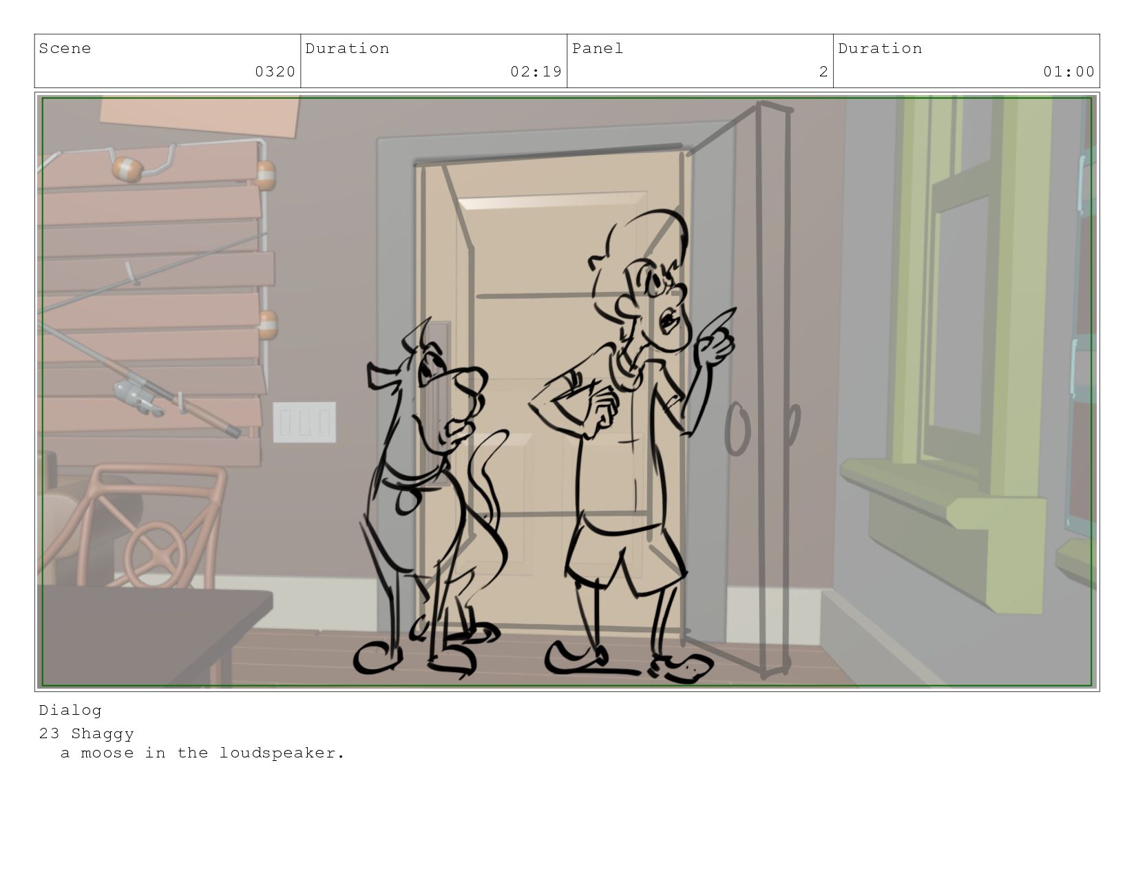 Scene 0320 Duration 02:19 Panel 2 Duration 01:00 Dialog 23