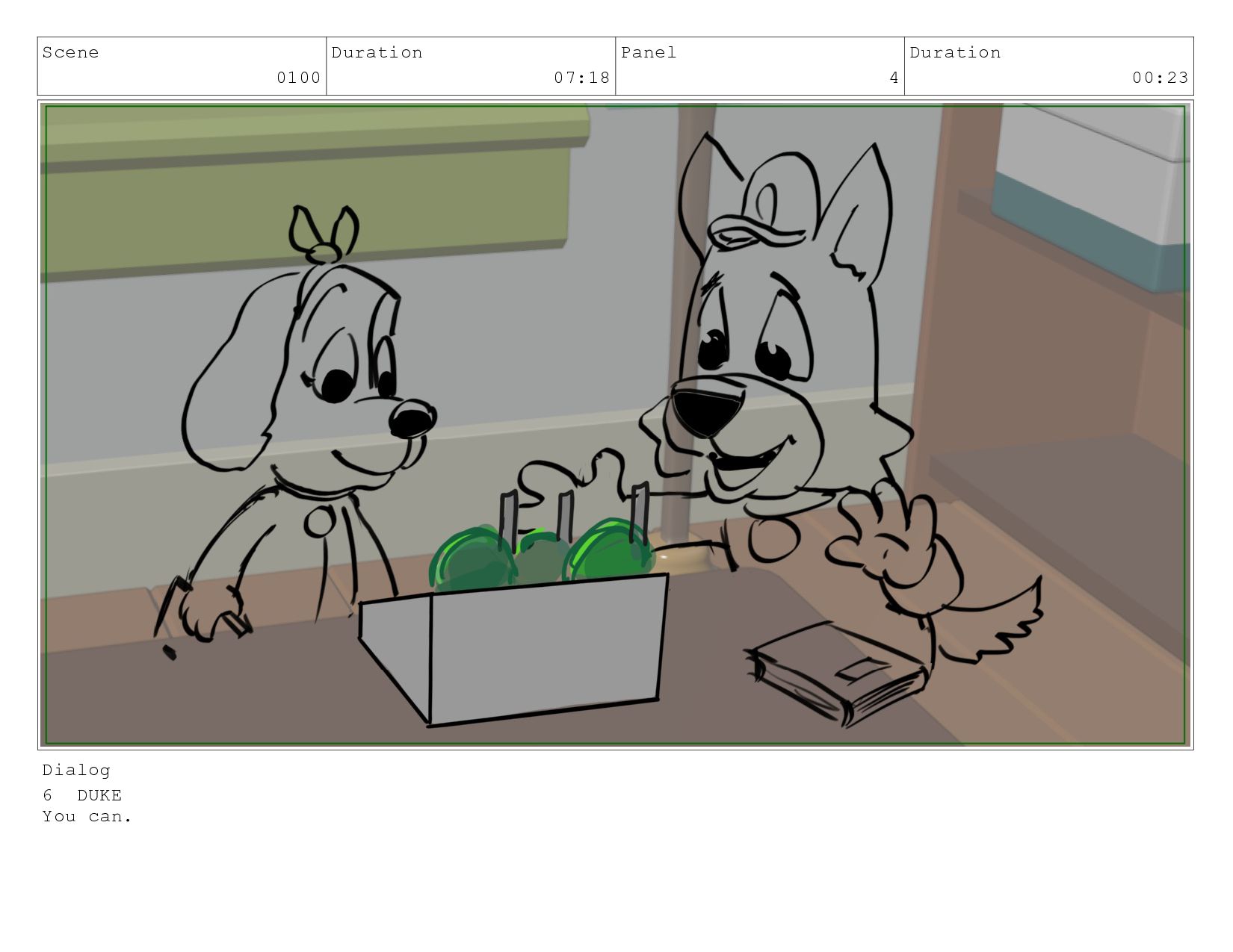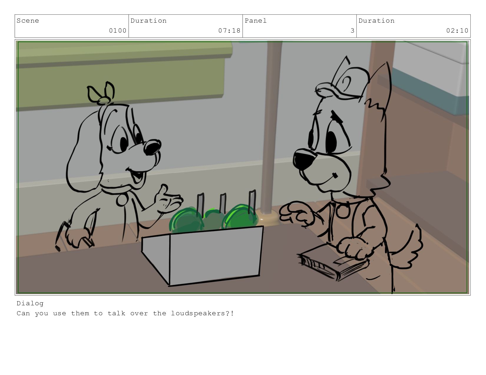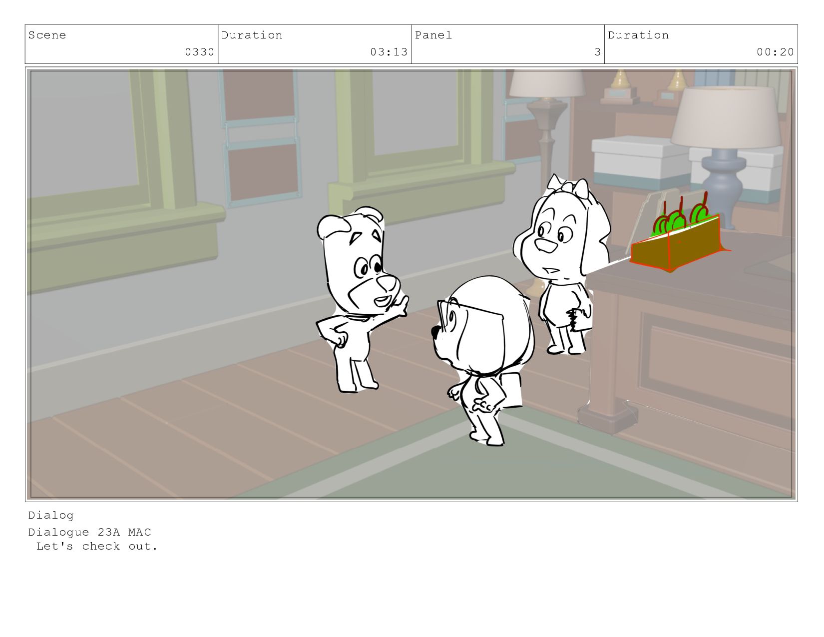 Scene 0330 Duration 03:13 Panel 1 Duration 01:03 Dialog Dialogue