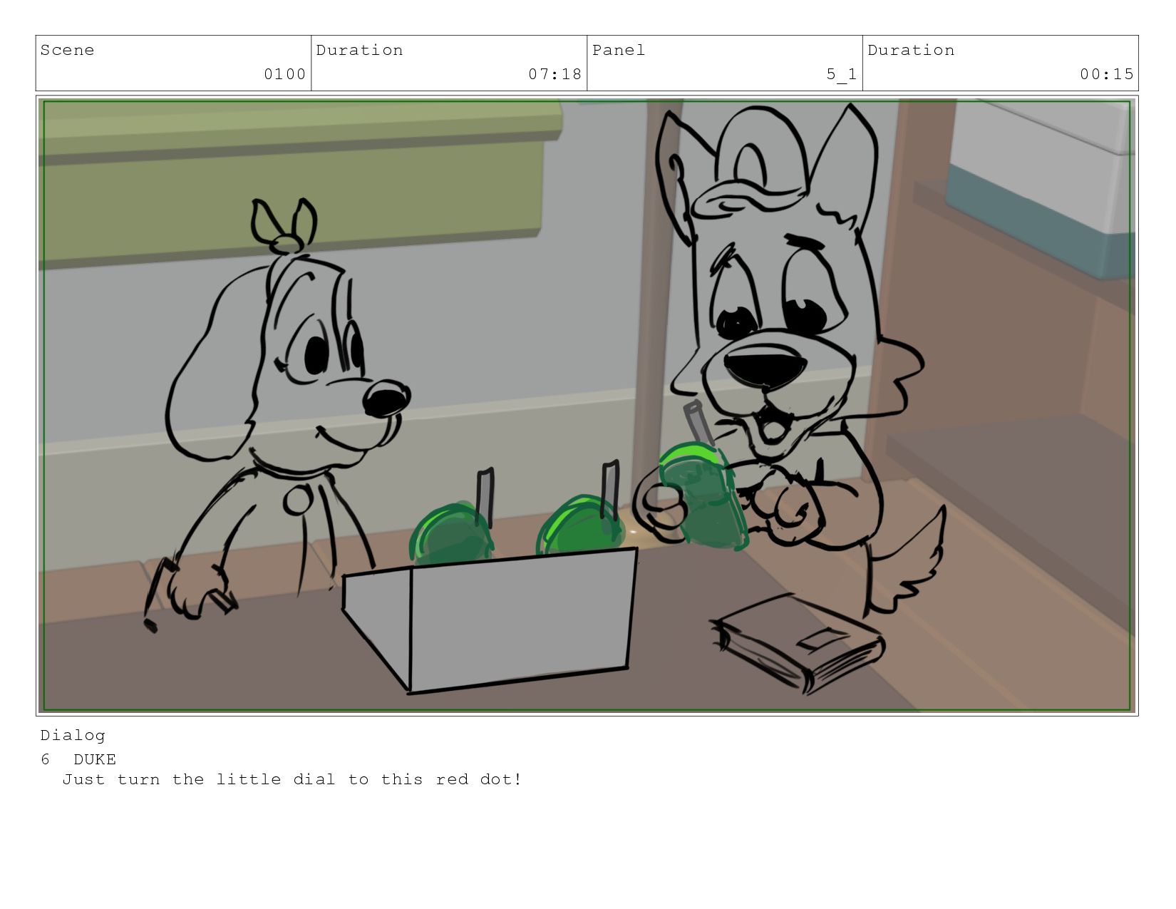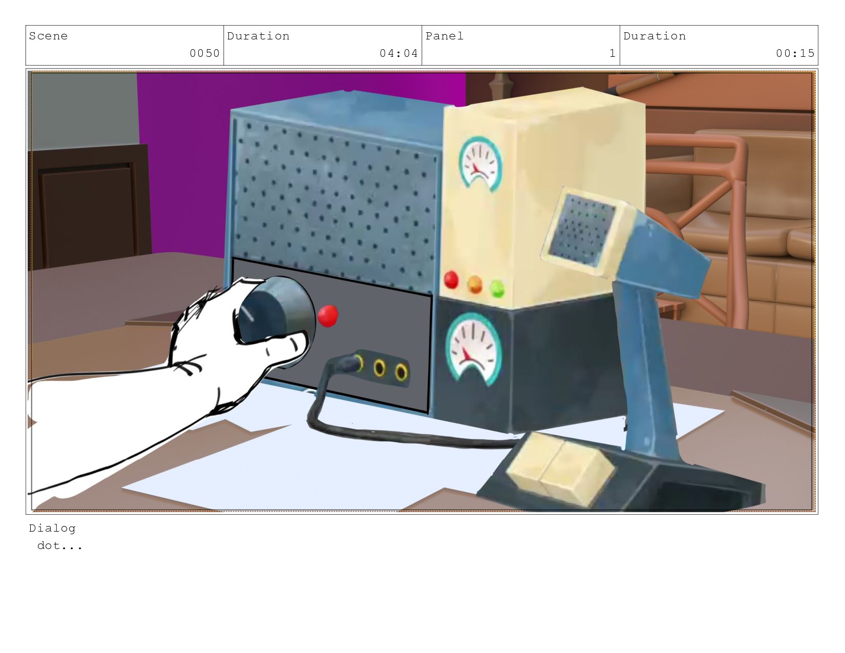 Scene 0050 Duration 04:04 Panel 1 Duration 00:15 Dialog dot...