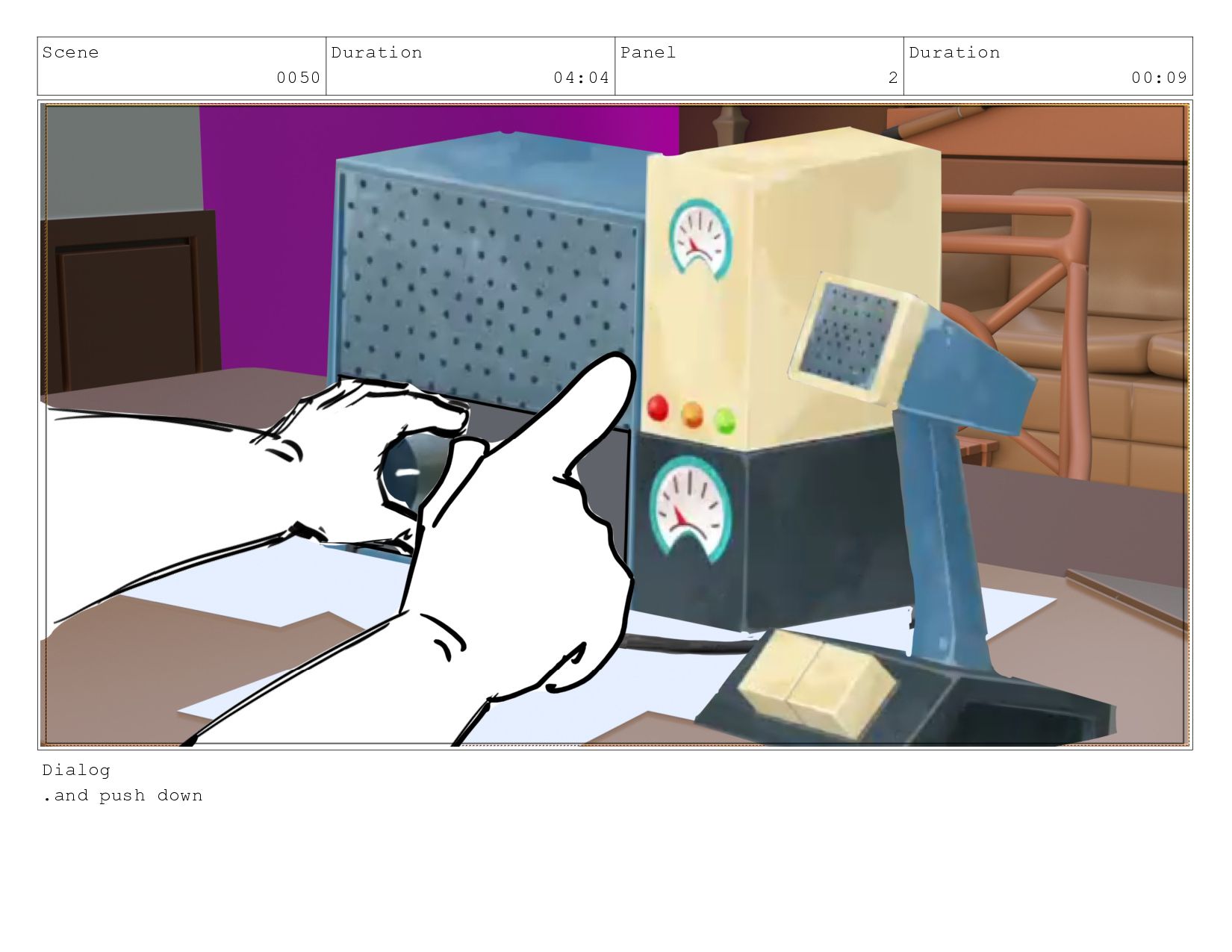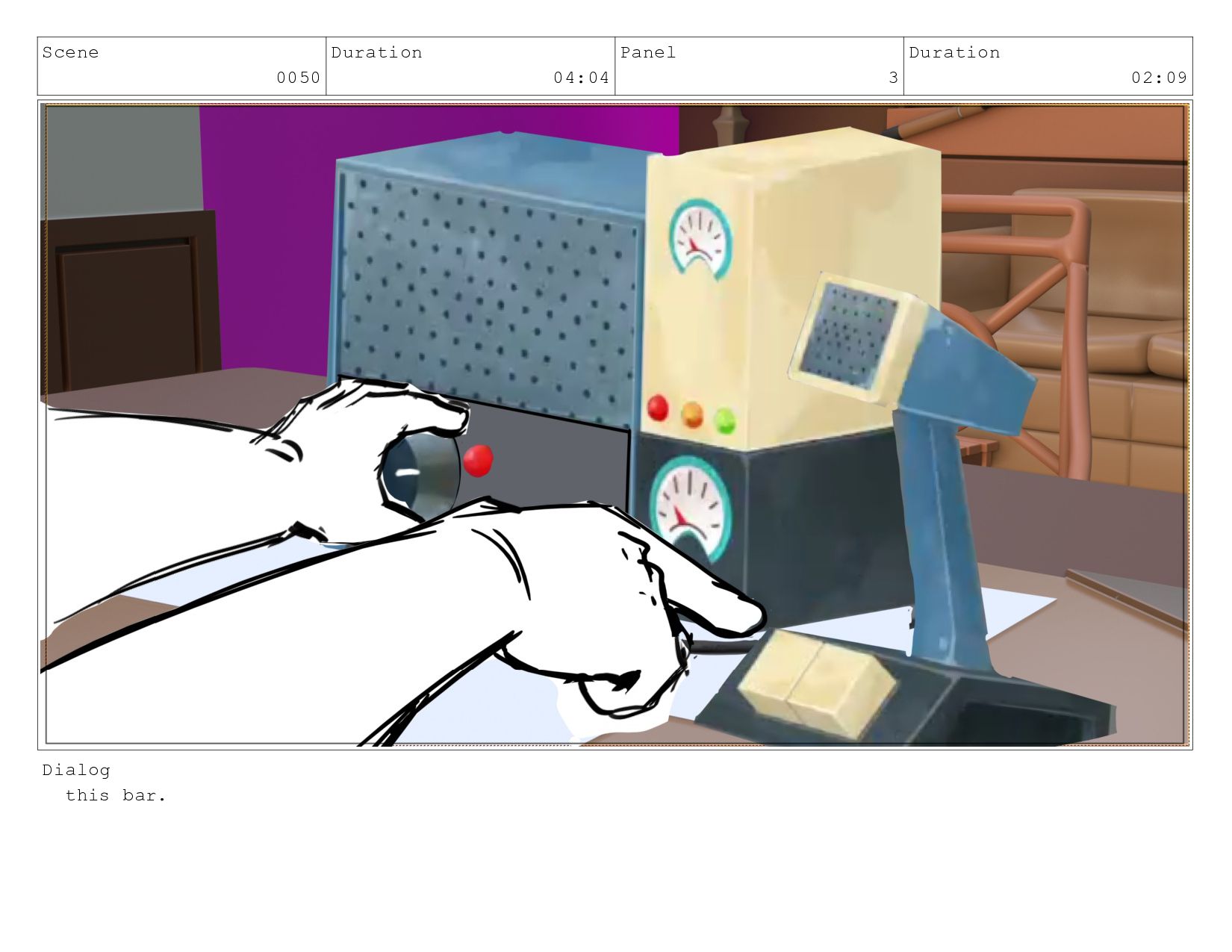 Scene 0050 Duration 04:04 Panel 3 Duration 02:09 Dialog this