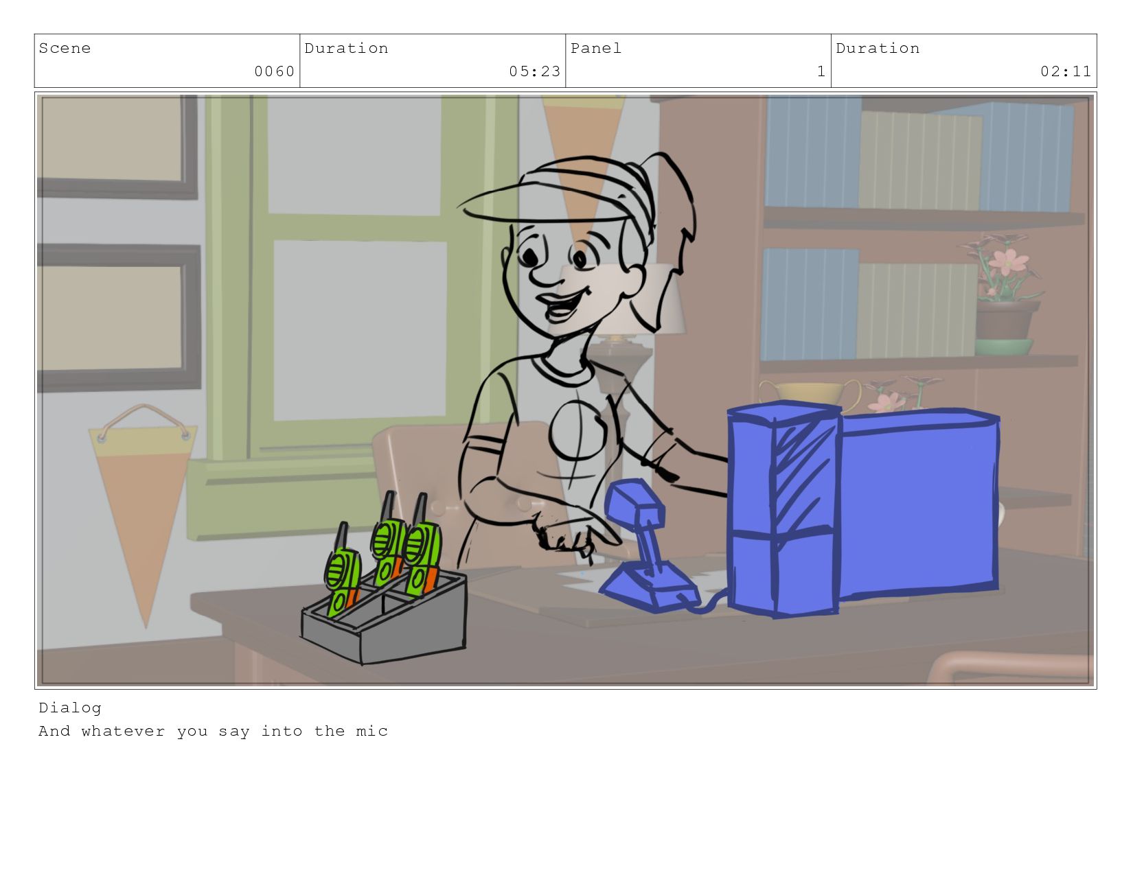 Scene 0060 Duration 05:23 Panel 1 Duration 02:11 Dialog And