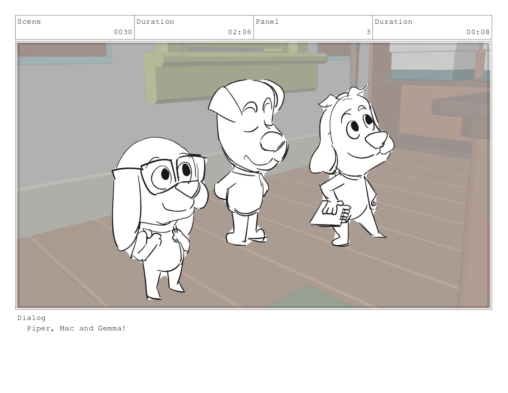 Scene 0030 Duration 02:06 Panel 3 Duration 00:08 Dialog Piper,