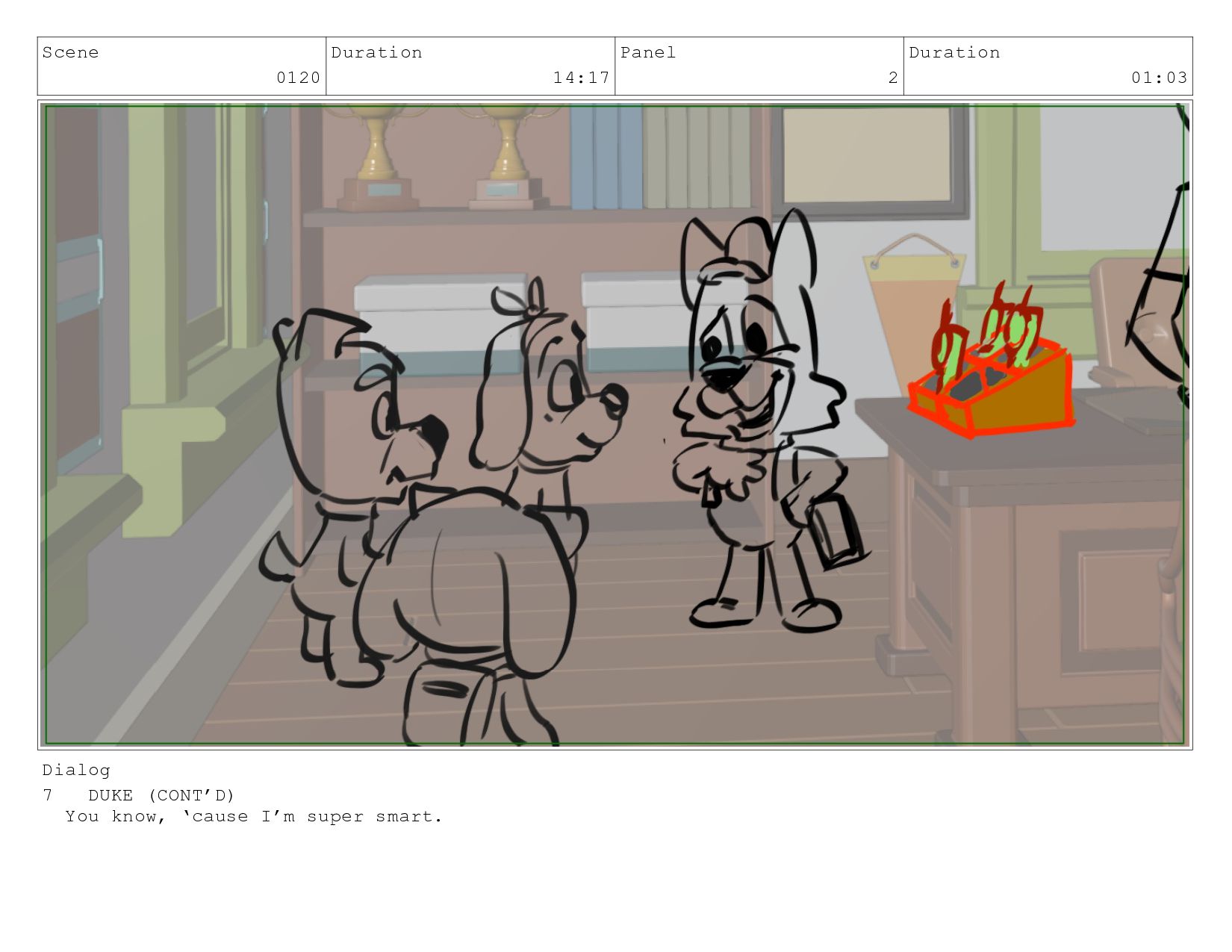 Scene 0120 Duration 14:17 Panel 3 Duration 00:15 Dialog 7