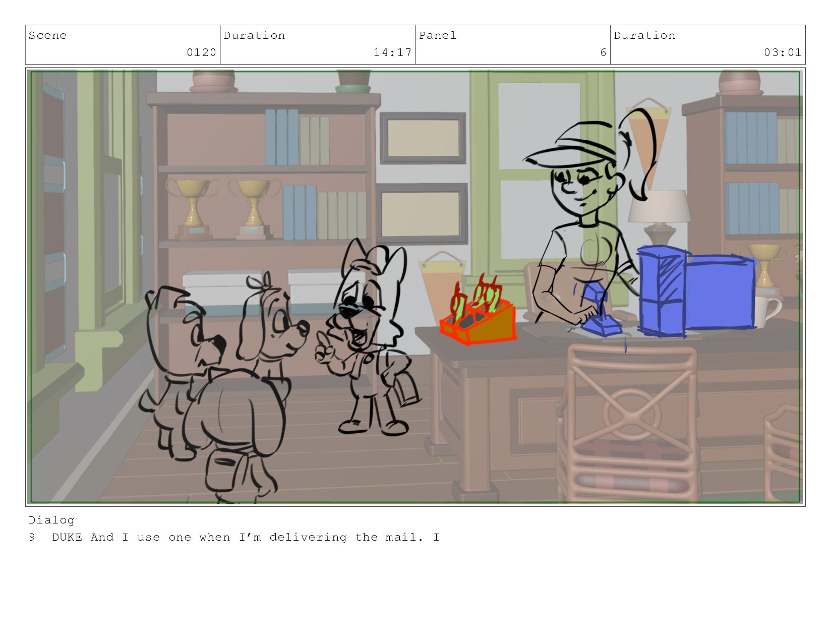 Scene 0120 Duration 14:17 Panel 6 Duration 03:01 Dialog 9