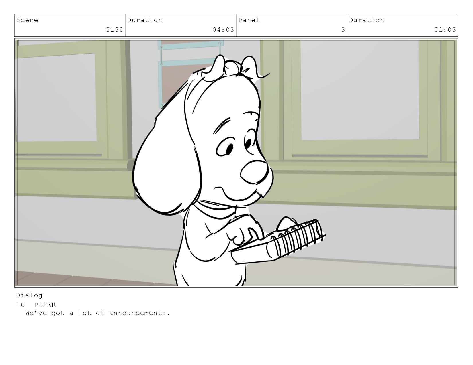 Scene 0130 Duration 04:03 Panel 3 Duration 01:03 Dialog 10