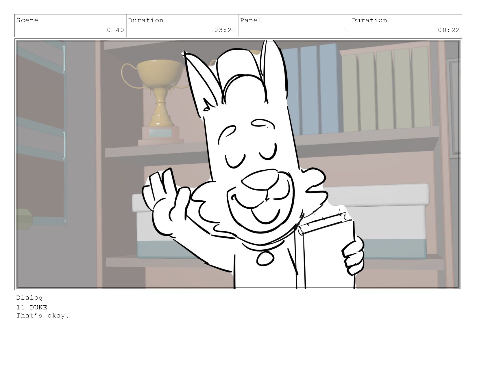 Scene 0140 Duration 03:21 Panel 1_A Duration 00:22 Dialog 11