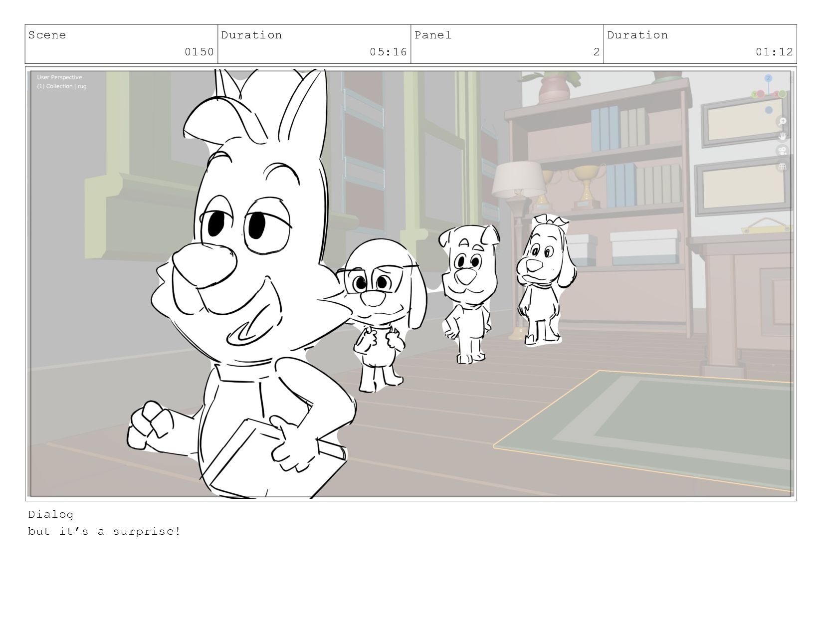 Scene 0150 Duration 05:16 Panel 2 Duration 01:12 Dialog but