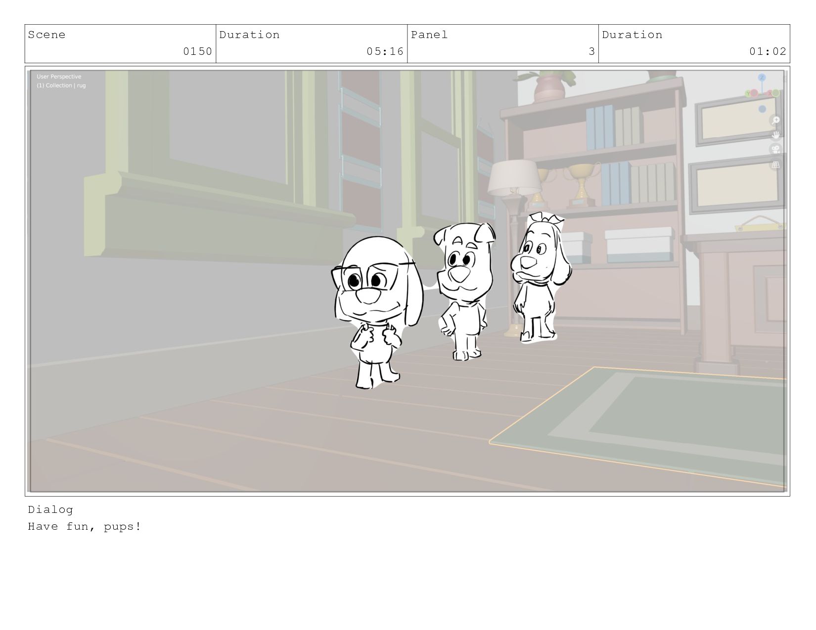 Scene 0150 Duration 05:16 Panel 3 Duration 01:02 Dialog Have