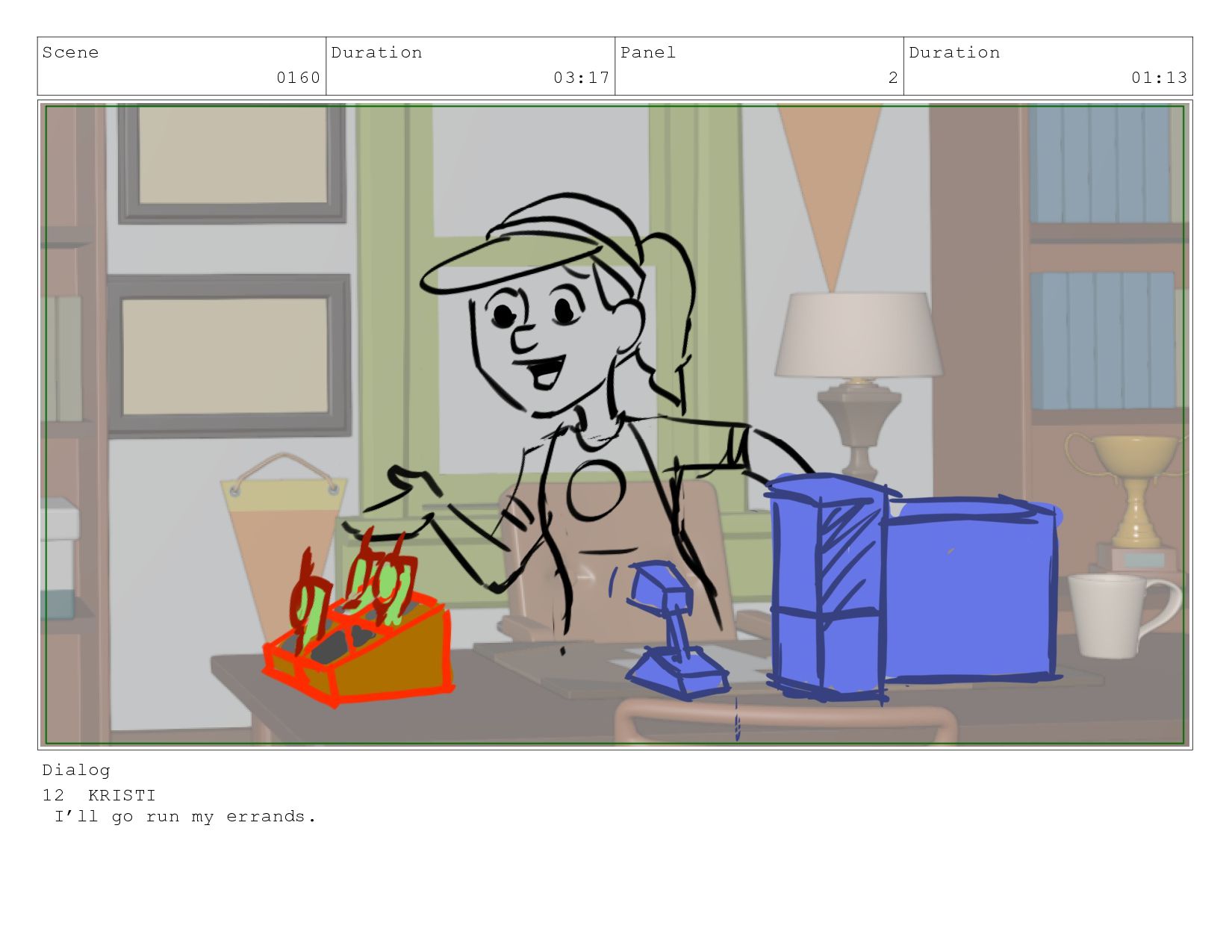 Scene 0160 Duration 03:17 Panel 2 Duration 01:13 Dialog 12