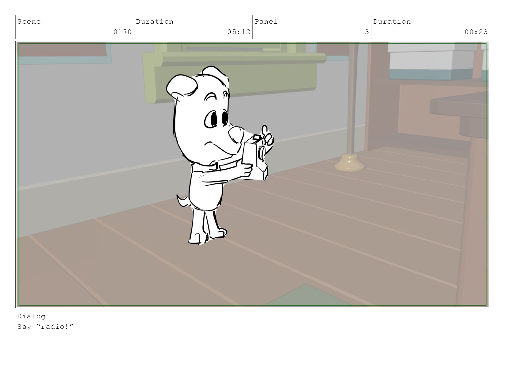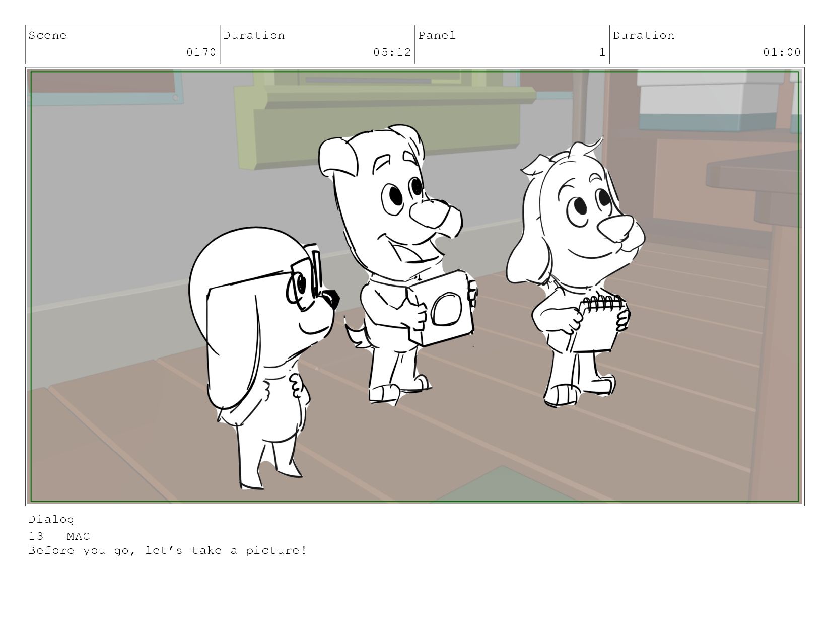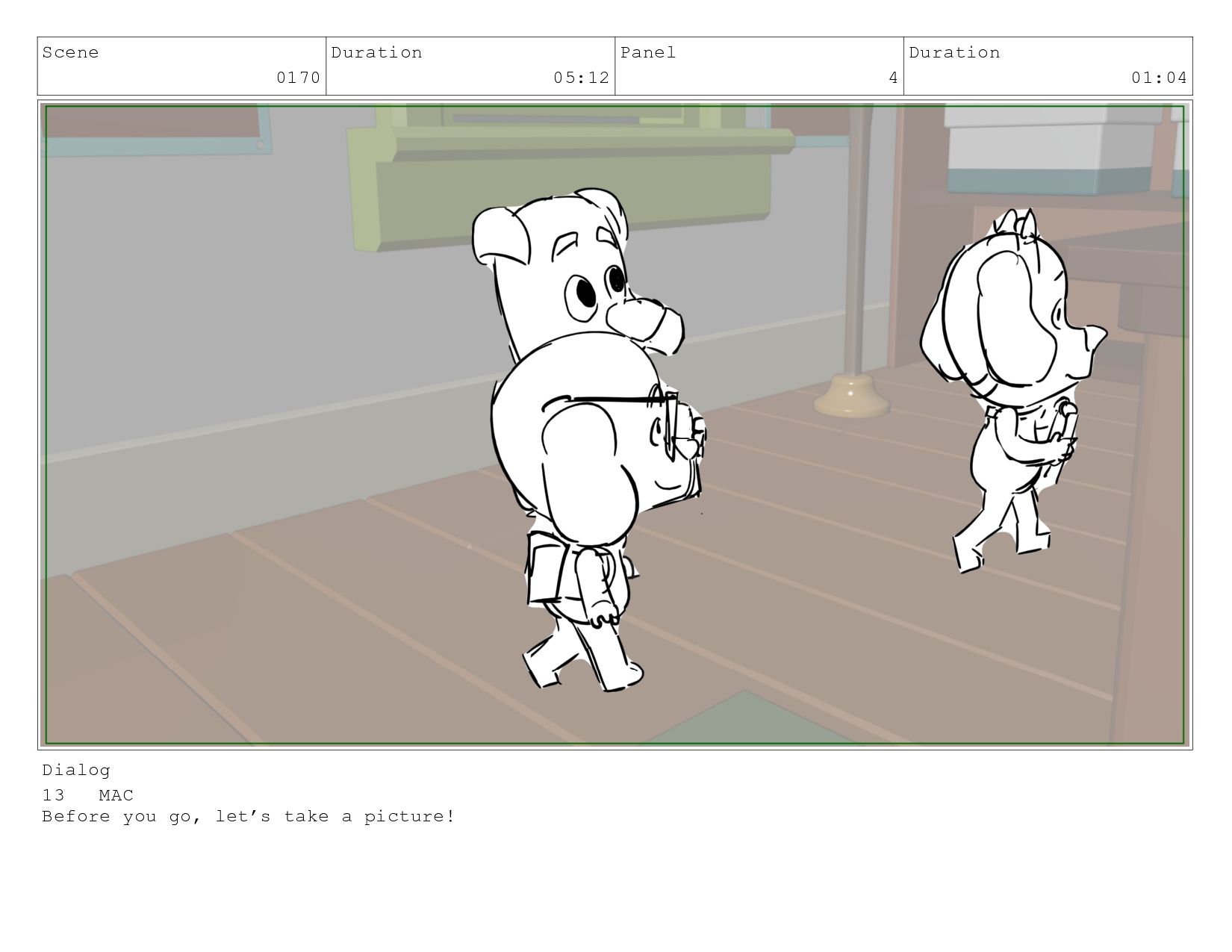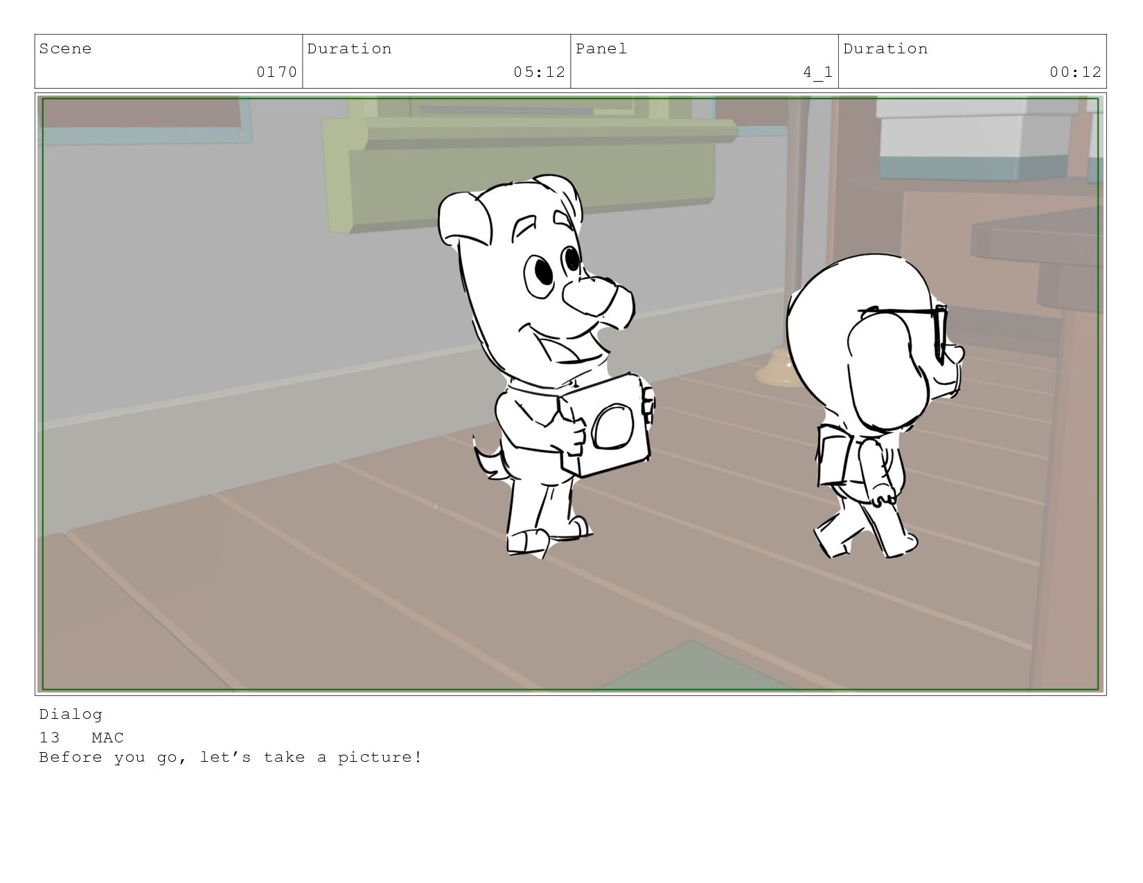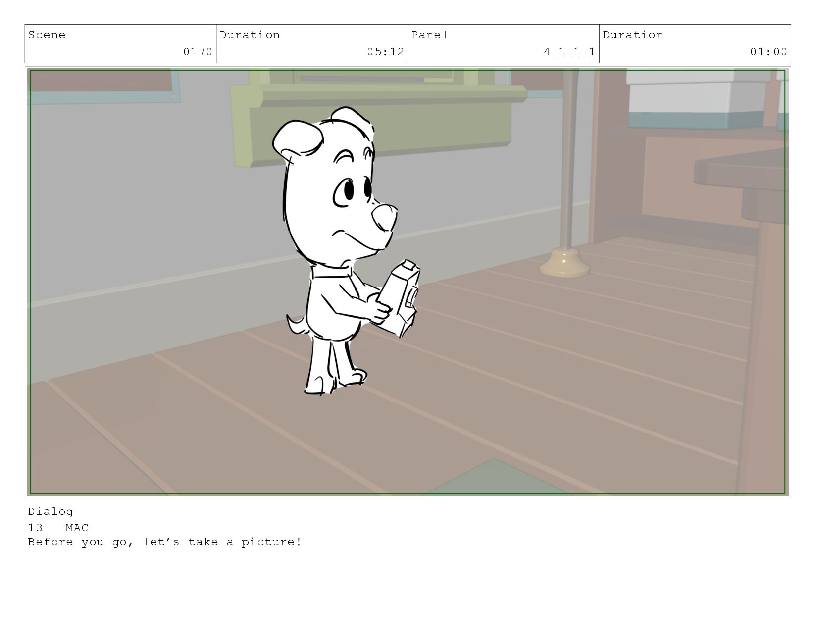 Scene 0170 Duration 05:12 Panel 1 Duration 01:00 Dialog 13